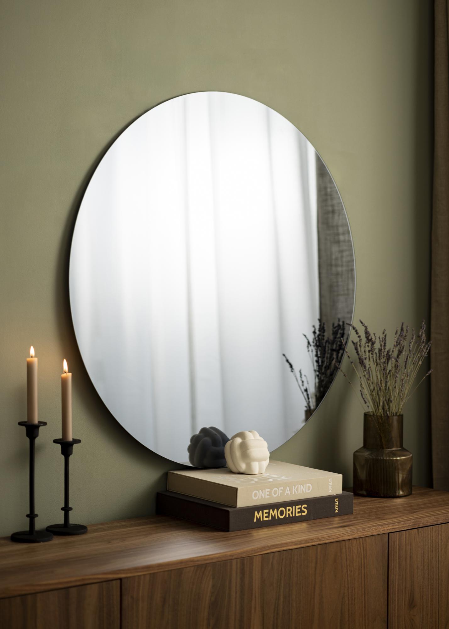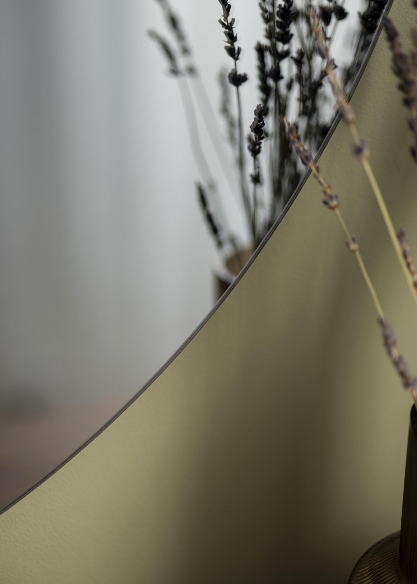 A round mirror with a stylish grey-toned mirror glass that adds a trendy interior detail in your home! This mirror is very thin and is made in minimalist design without a frame. This creates an elegant and super modern look.