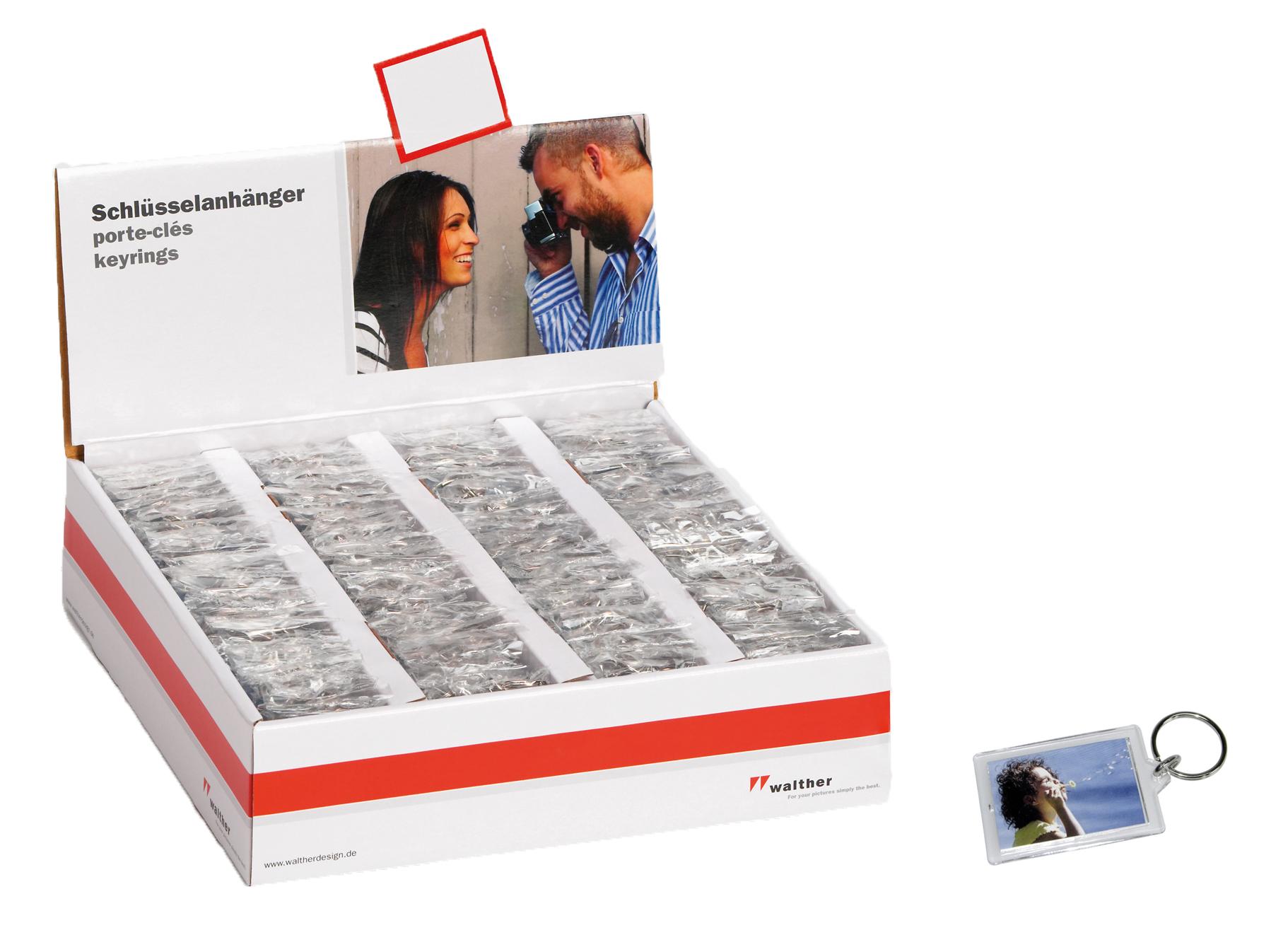 Start the frame selector »Key ring in transparent plastic, with space for two pictures with the dimensions 3.5x4.5 cm.
