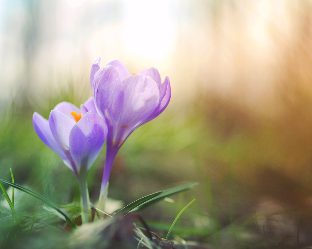 A charming picture of perhaps the most colourful sun worshipper of spring, the crocus. The blurred background in a complementary colour lifts the flowers and brings harmony to the photograph. Suitable for those who want joy of colour in their home and it's always nice to use a shade from the painting as an accent colour in the rest of the decor. Feel free to combine with other plant motifs to create a cohesive feel in the room.