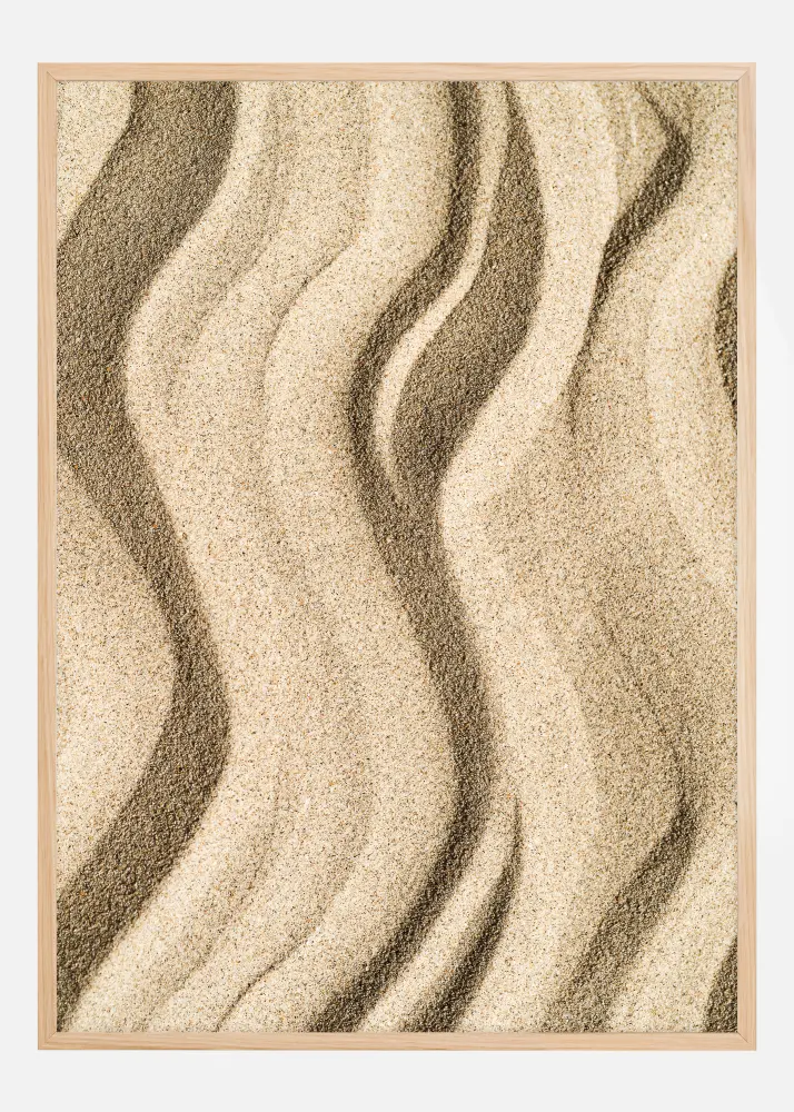 This poster is a reminder of nature's simple beauty, perfect for creating a peaceful and earthy atmosphere in your home. The organic rhythm and balance found in the patterns provide a calming element to any environment, inviting moments of reflection and meditative stillness. Let these sand lines become a part of your room and bring with them a piece of nature's silent dialogue.