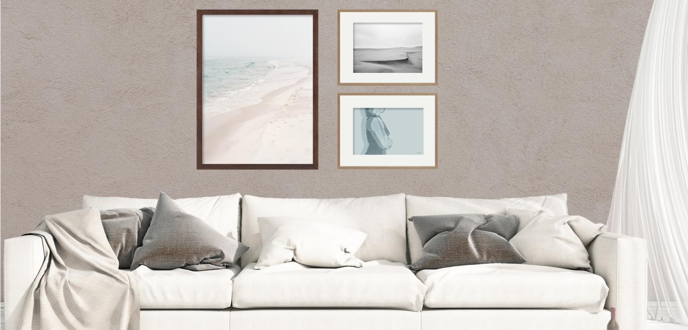 A black and white subject in a white picture frame, on the other hand, will appear as a harmonised unit in a nice ensemble. You could even be more playful by, for example, combining sepia pictures with colourful red photo frames.