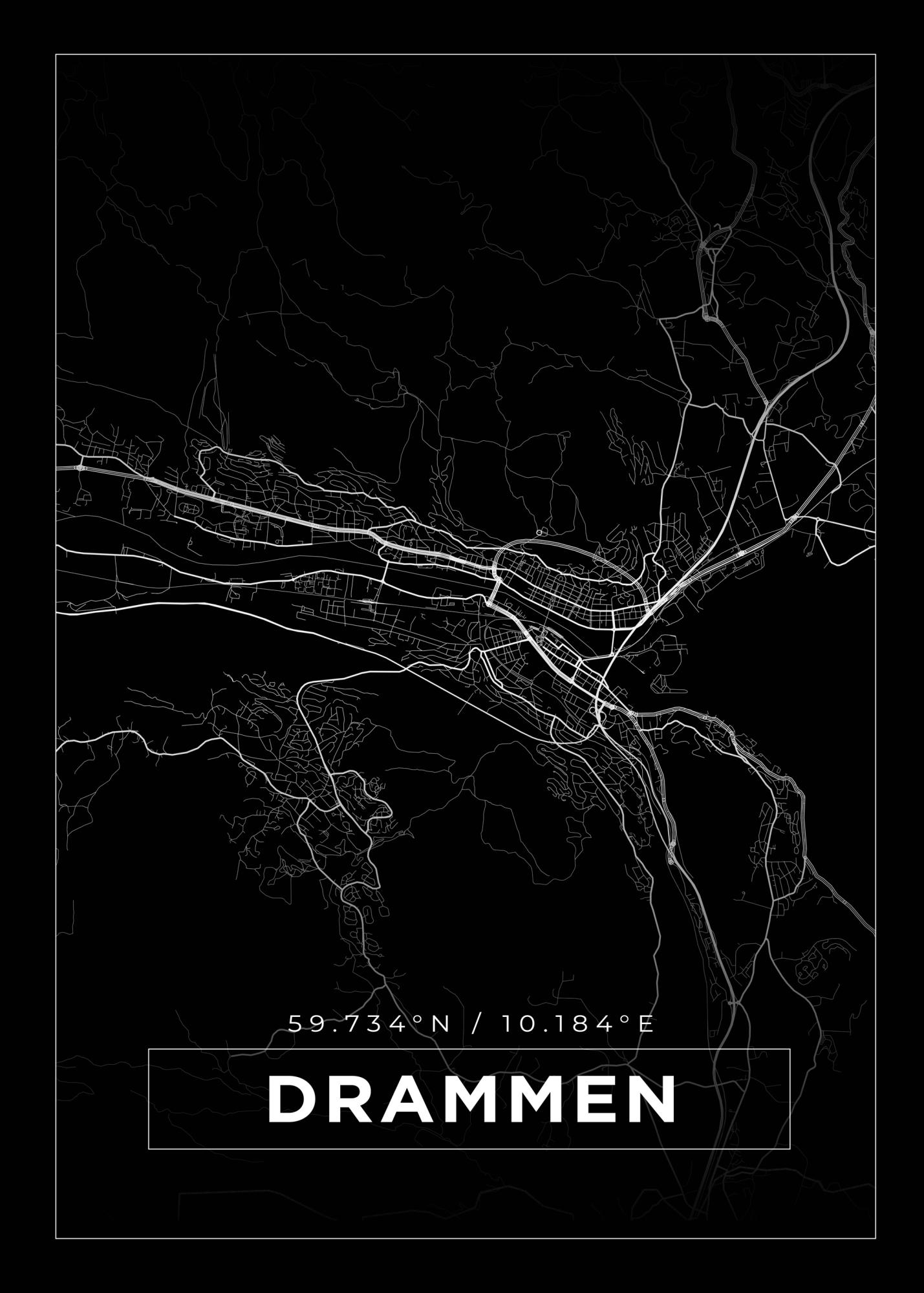 Map - Drammen - Black Poster