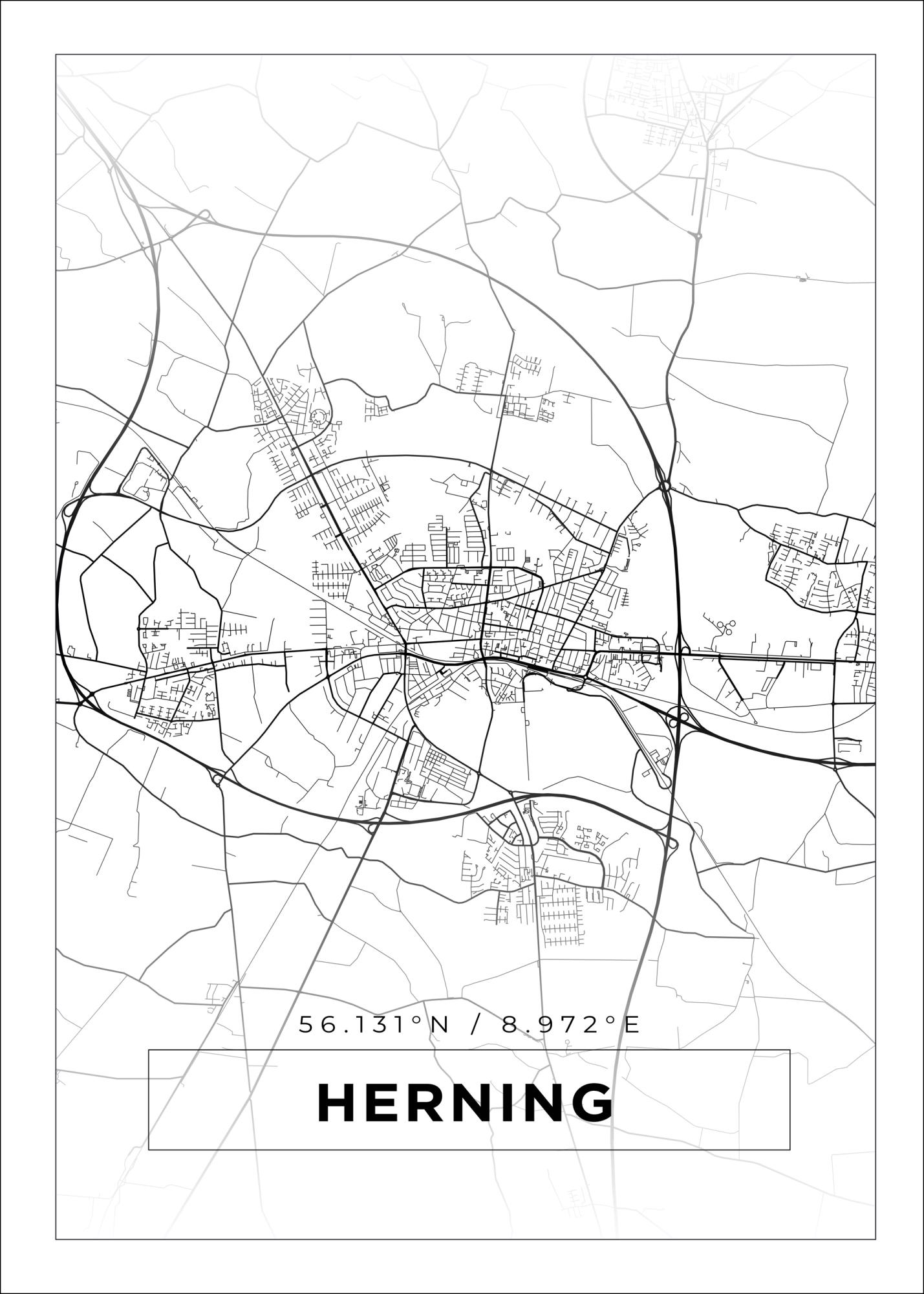 Map - Herning - White Poster