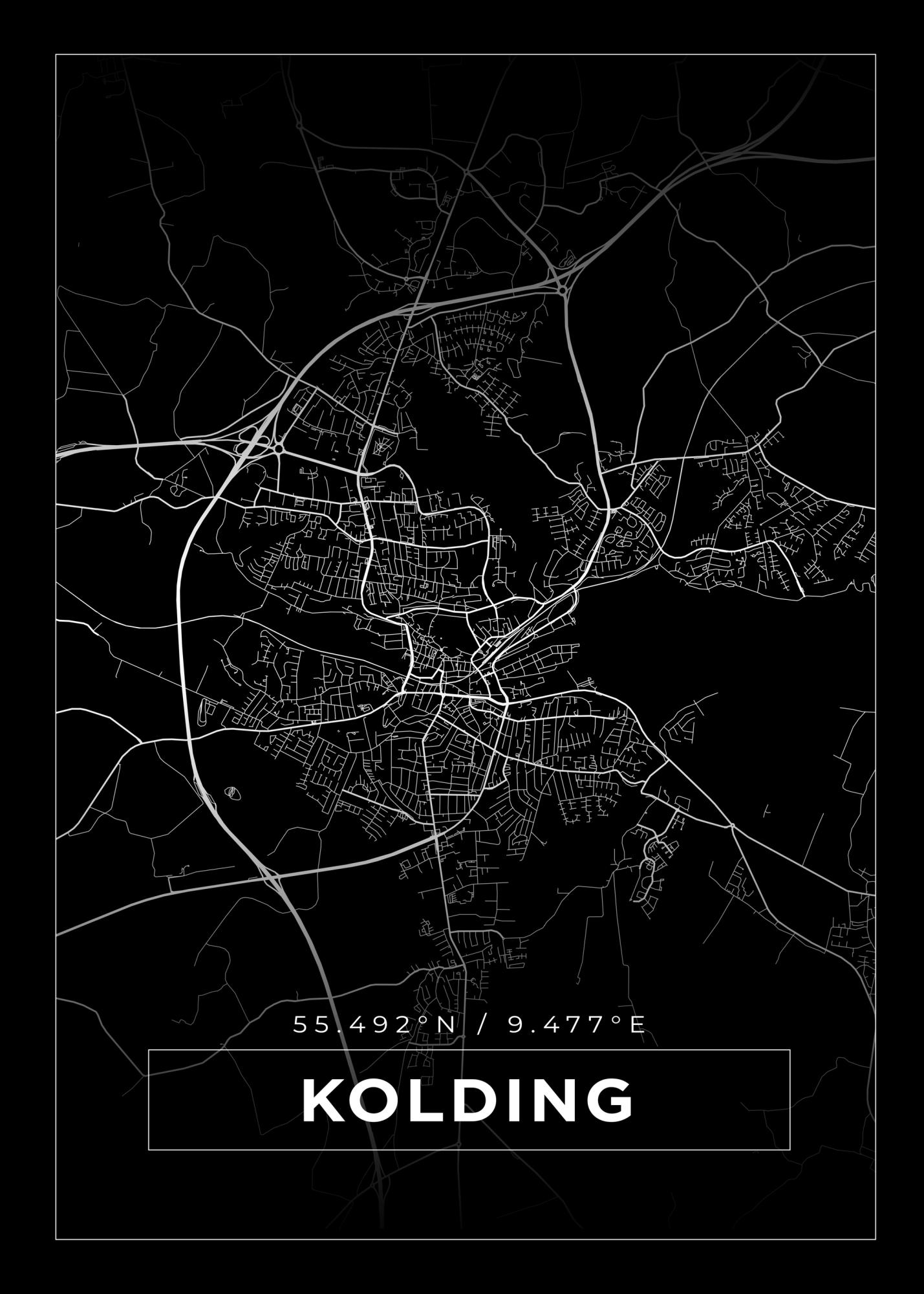 Map - Kolding - Black Poster