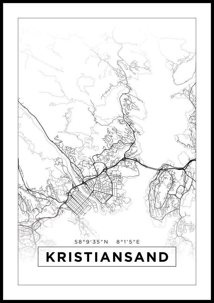 Map - Kristiansand - White Poster