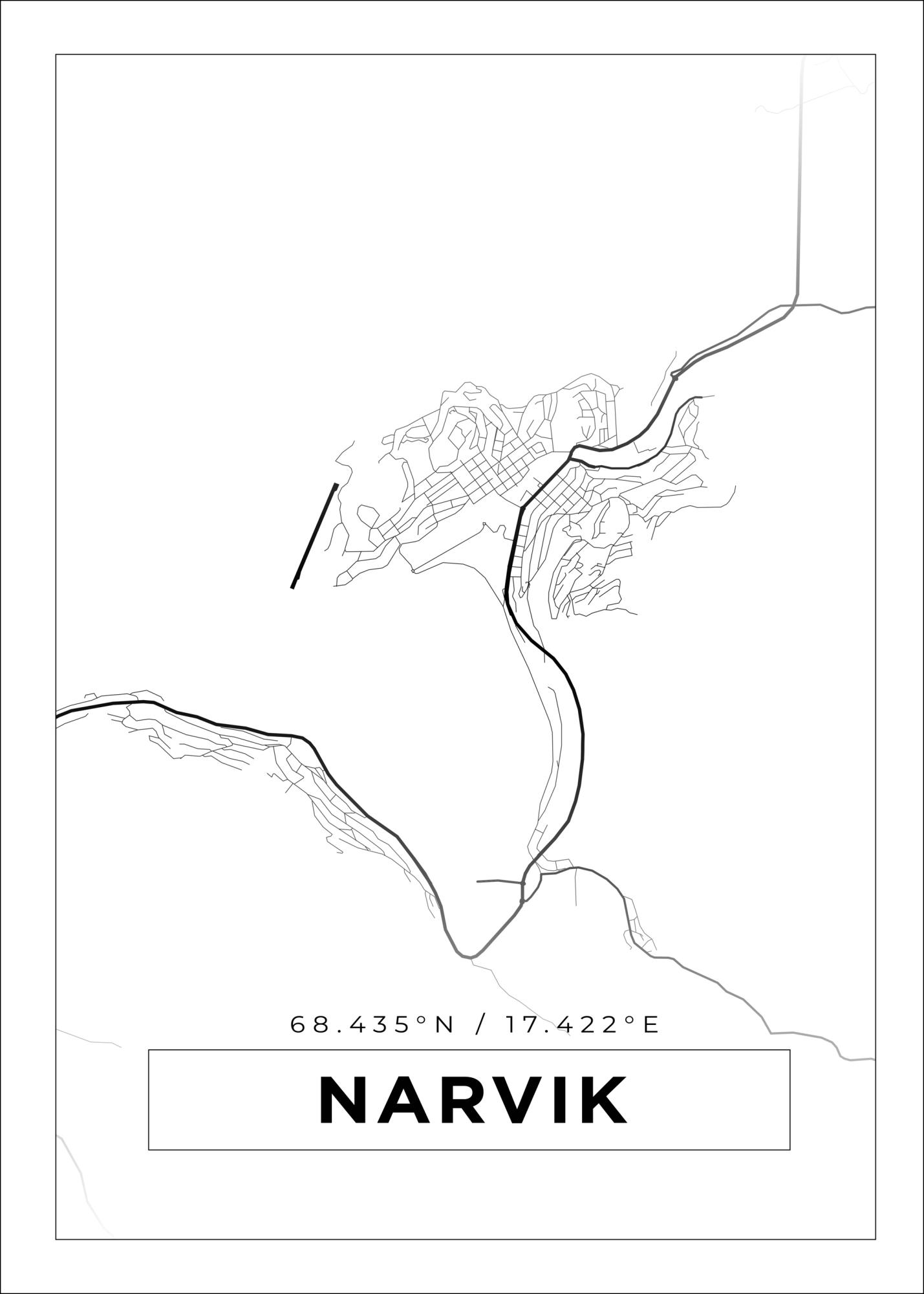 Map - Narvik - White Poster