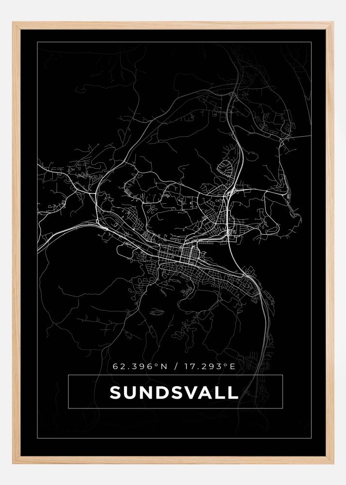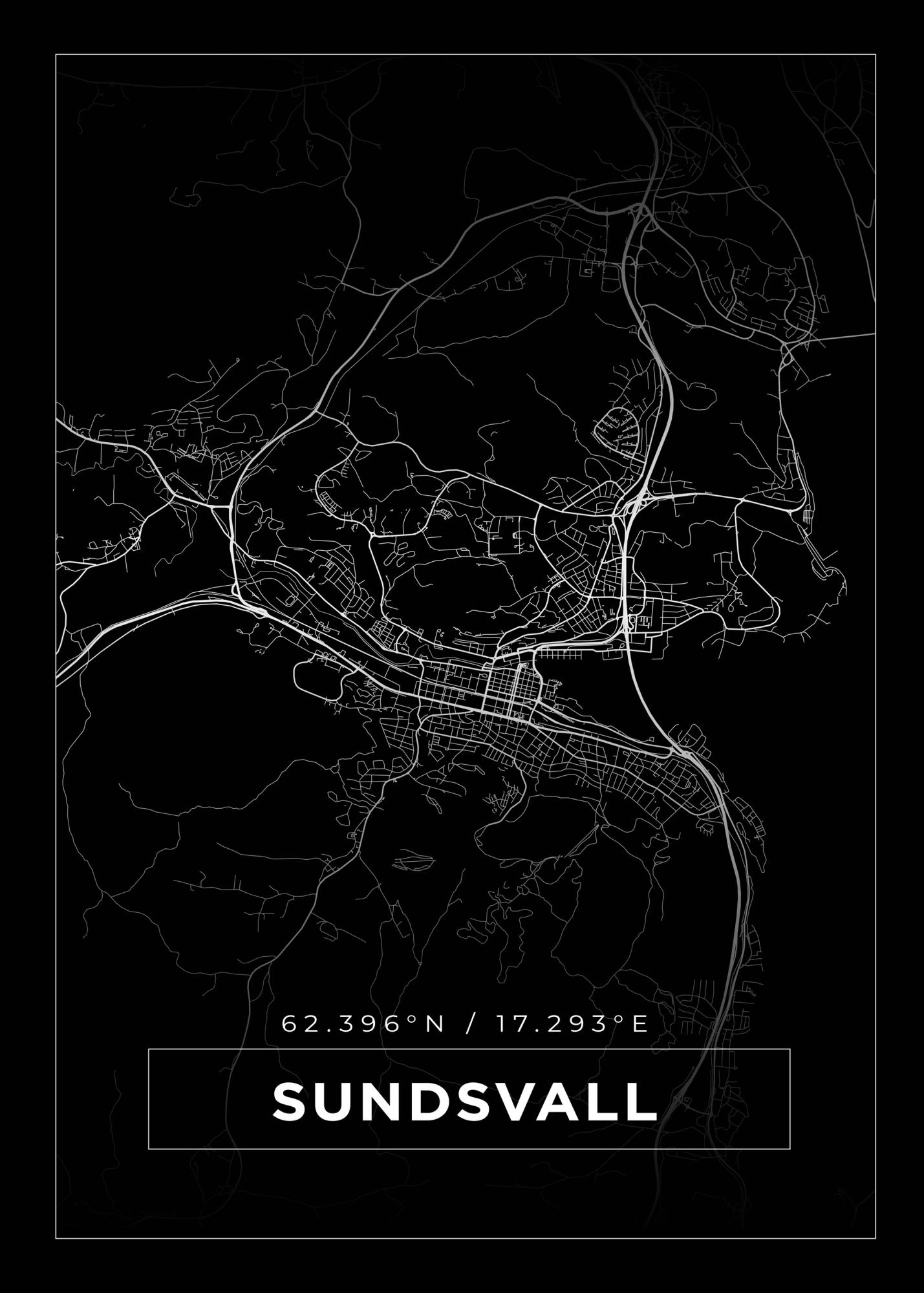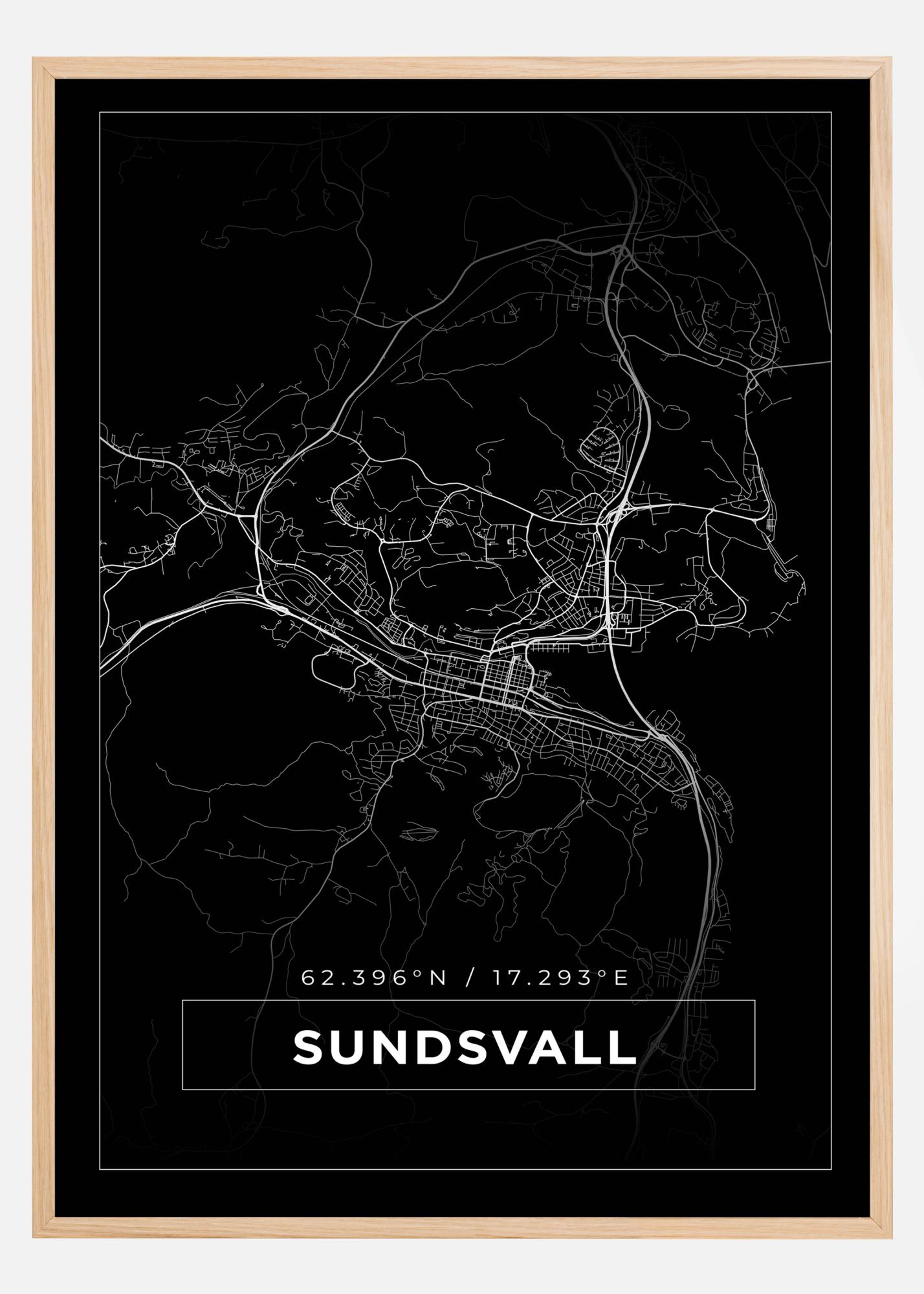 Map - Sundsvall - Black Poster