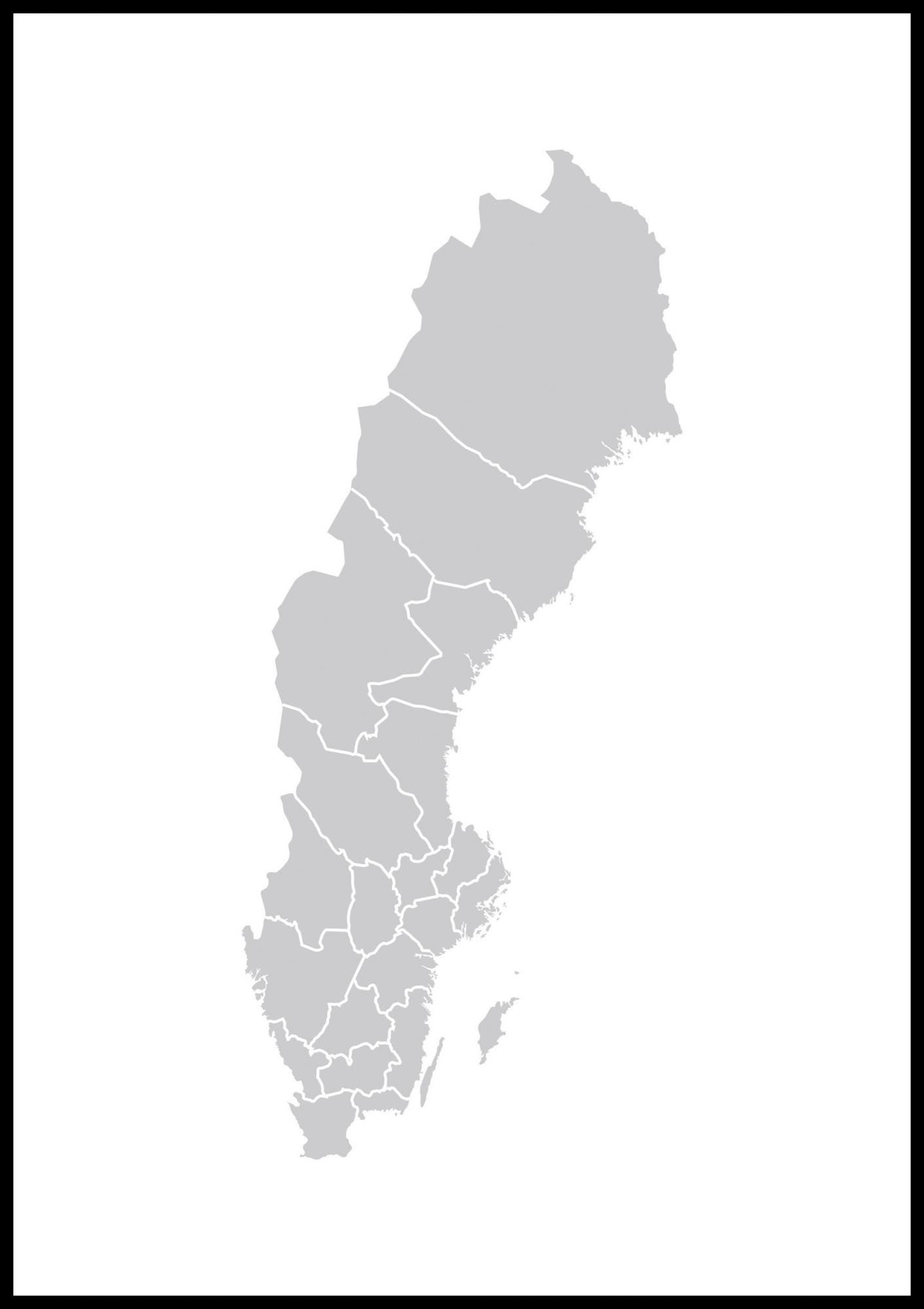 Map of Sweden Grey Poster (21x29.7 cm (A4))
