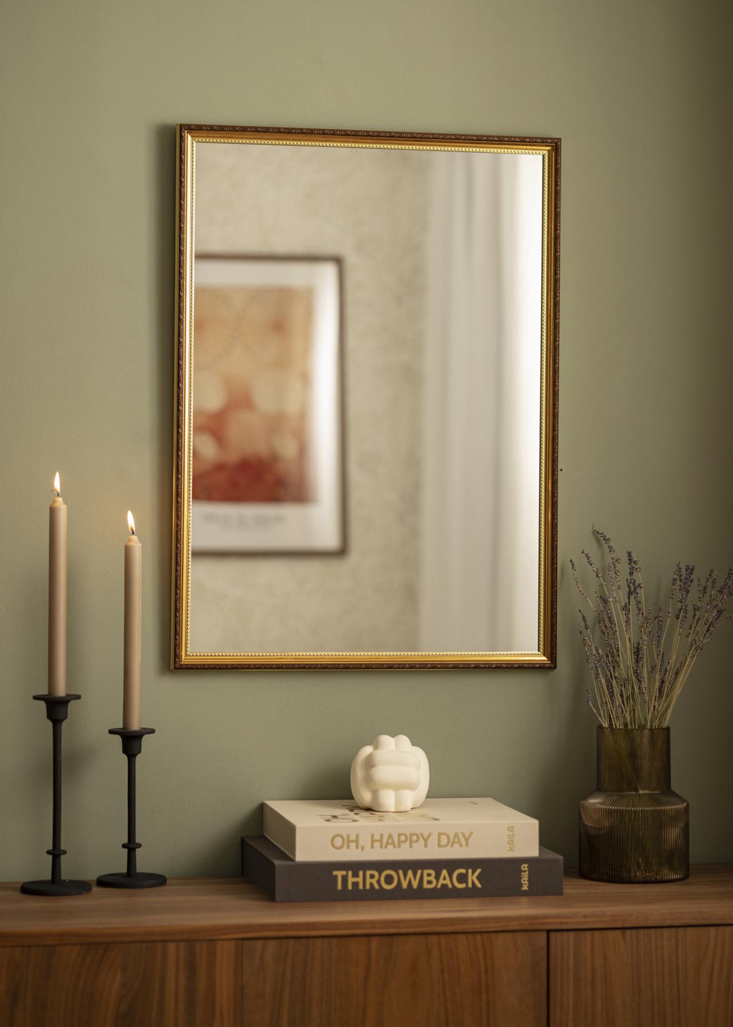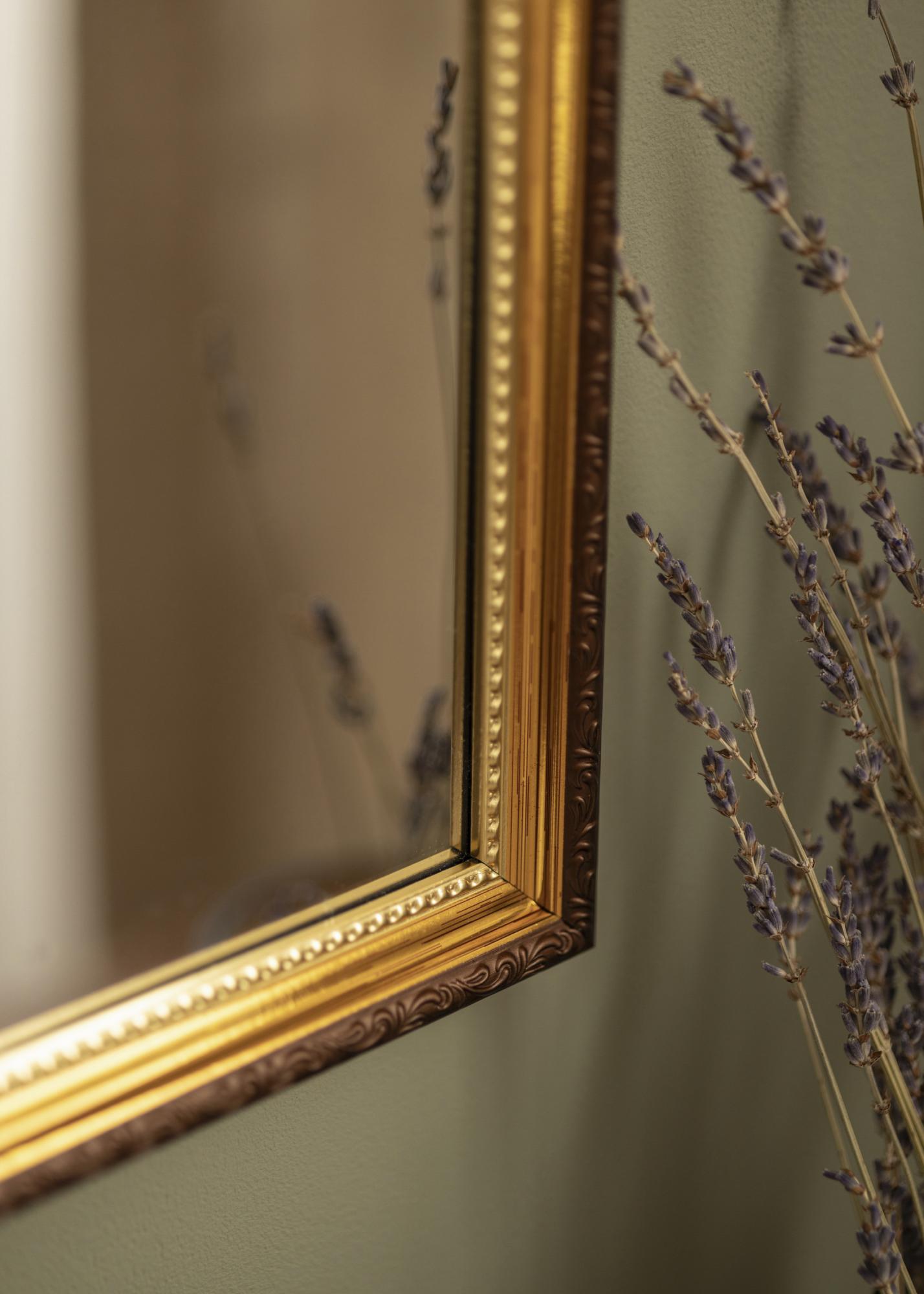 Abisko Gold is the perfect wall mirror for anyone who loves retro-inspired design with an elegant, decorative style. The 25 mm wide profile has an outer edge in a rich shade of brown surrounding an exclusive gold colour closest to the mirror glass. The frame has beautiful ornate detailing making this stylish mirror perfect for the hall as well as the bedroom.