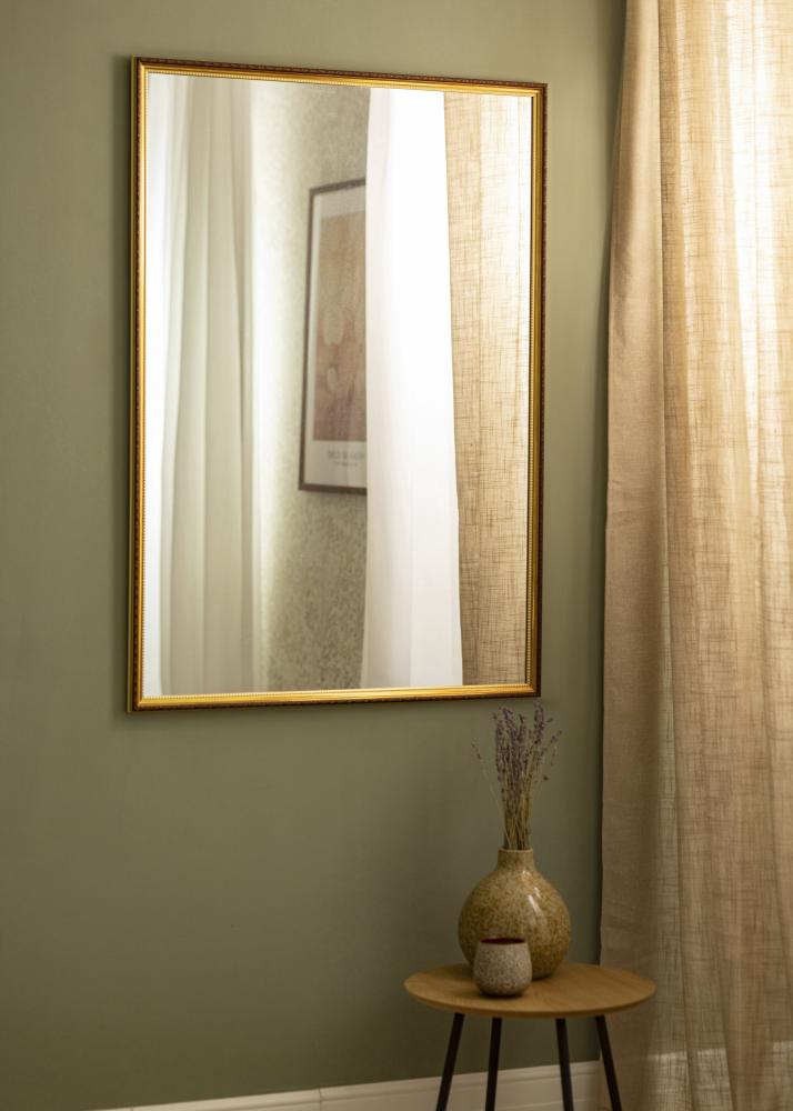 Abisko Gold is the perfect wall mirror for anyone who loves retro-inspired design with an elegant, decorative style. The 25 mm wide profile has an outer edge in a rich shade of brown surrounding an exclusive gold colour closest to the mirror glass. The frame has beautiful ornate detailing making this stylish mirror perfect for the hall as well as the bedroom.