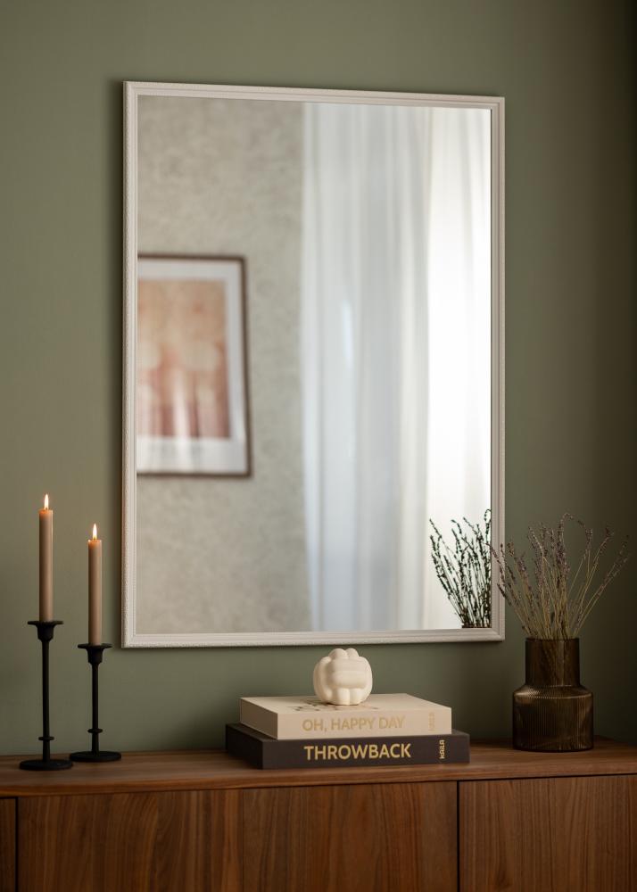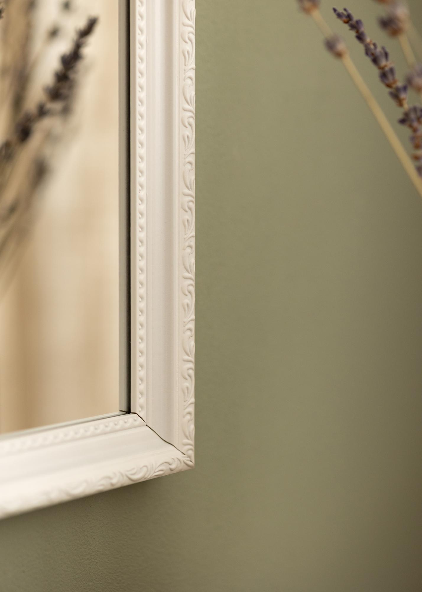 A white mirror brightens up any room, and this mirror adds a touch of elegance too! The mirror is made from composite and has traditional colourless mirror glass. The 25 mm wide frame profile is beautifully ornate giving it an incredibly stylish appearance.