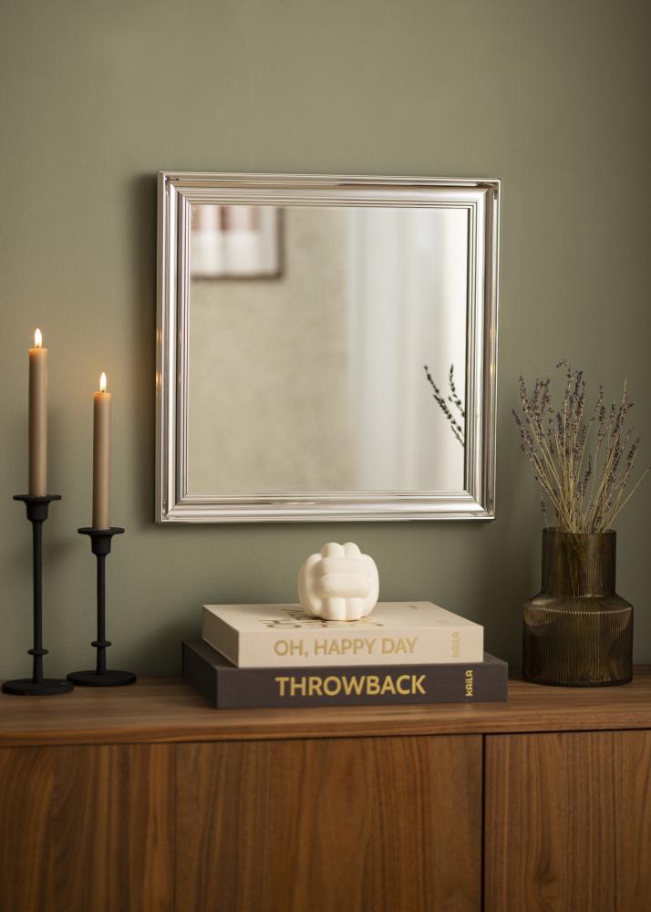 Start the frame selector »Alice Silver is a mirror with an austere, classic frame with straight lines that draws focus to the reflection.