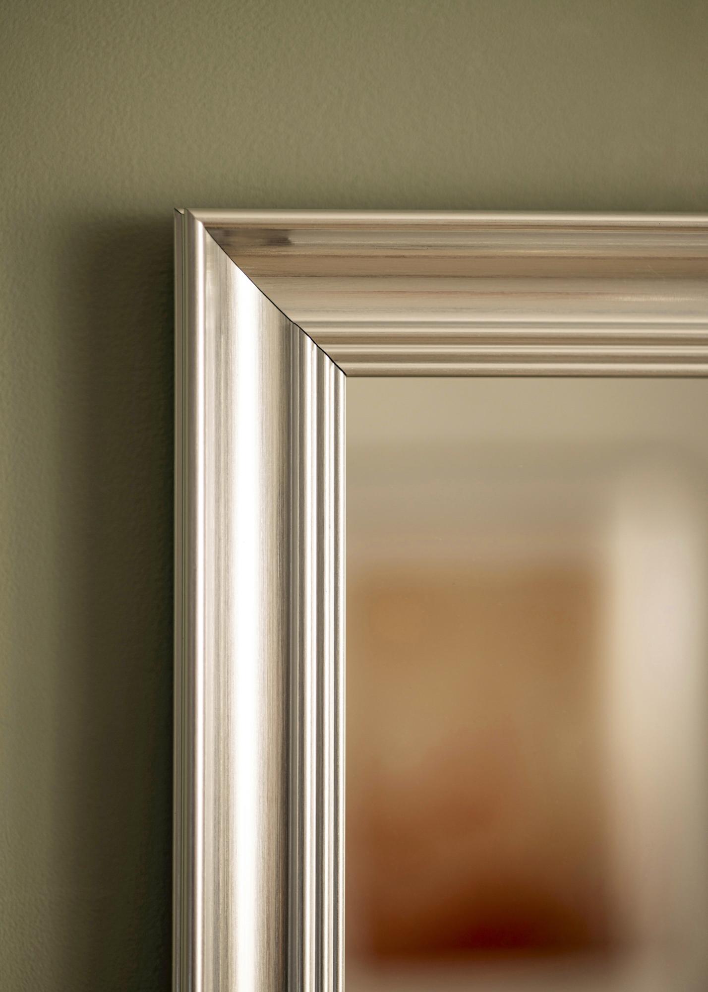 Start the frame selector »Alice Silver is a mirror with an austere, classic frame with straight lines that draws focus to the reflection.