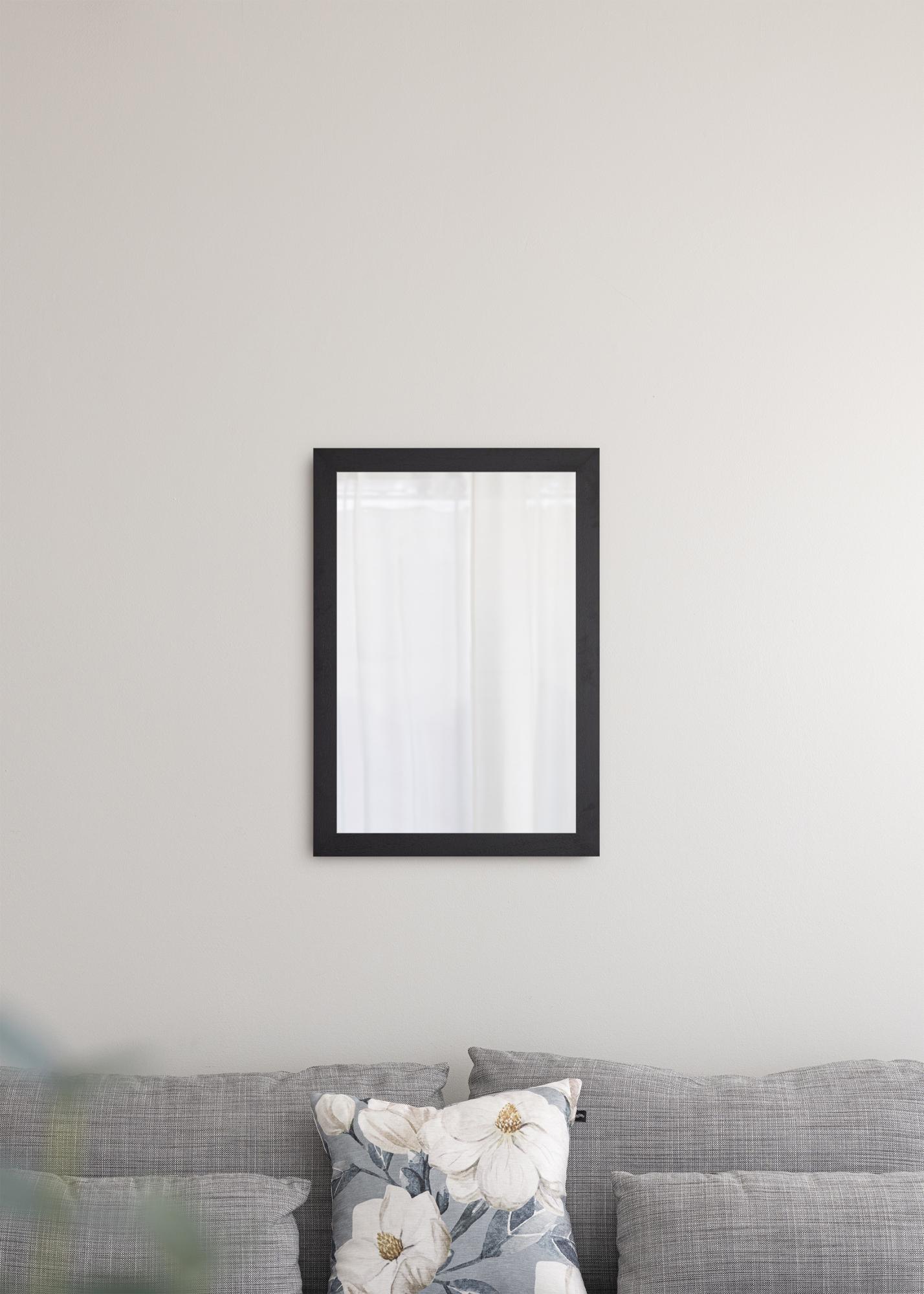 The minimalist design of this stylish wall mirror from Mavanti will blend seamlessly with both modern and traditionally decorated homes. The mirror has a 39 mm wide black painted wooden frame, which gives a modern impression. Not only do mirrors look fantastic on the walls, but they also have the effect of making rooms seem larger. This 47x67 cm mirror is part of a series of wall mirrors in a range of sizes.