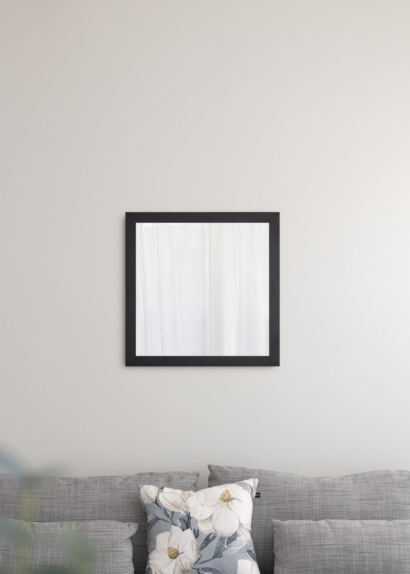 The minimalist design of this stylish wall mirror from Mavanti will blend seamlessly with both modern and traditionally decorated homes. The mirror has a 39 mm wide black painted wooden frame, which gives a modern impression. Not only do mirrors look fantastic on the walls, but they also have the effect of making rooms seem larger. This 57x57 cm mirror is part of a series of wall mirrors in a range of sizes.