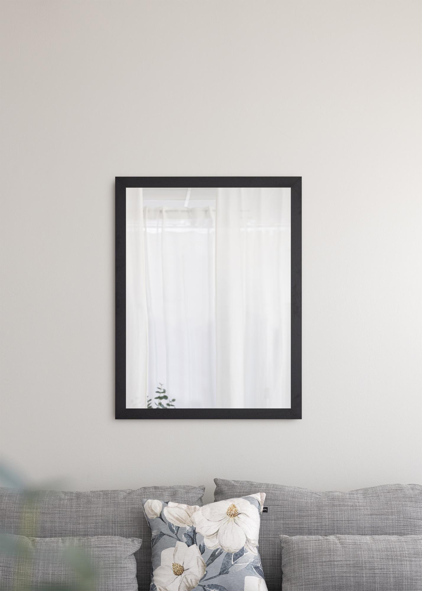 The minimalist design of this stylish wall mirror from Mavanti will blend seamlessly with both modern and traditionally decorated homes. The mirror has a 39 mm wide black painted wooden frame, which gives a modern impression. Not only do mirrors look fantastic on the walls, but they also have the effect of making rooms seem larger. This 67x87 cm mirror is part of a series of wall mirrors in a range of sizes.