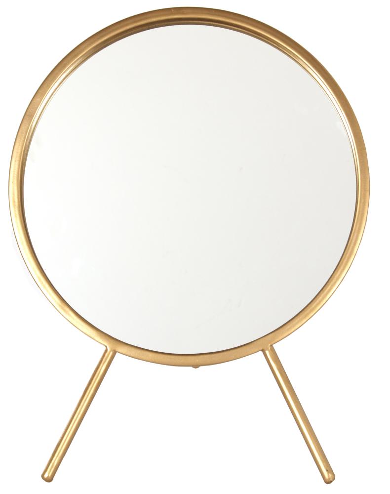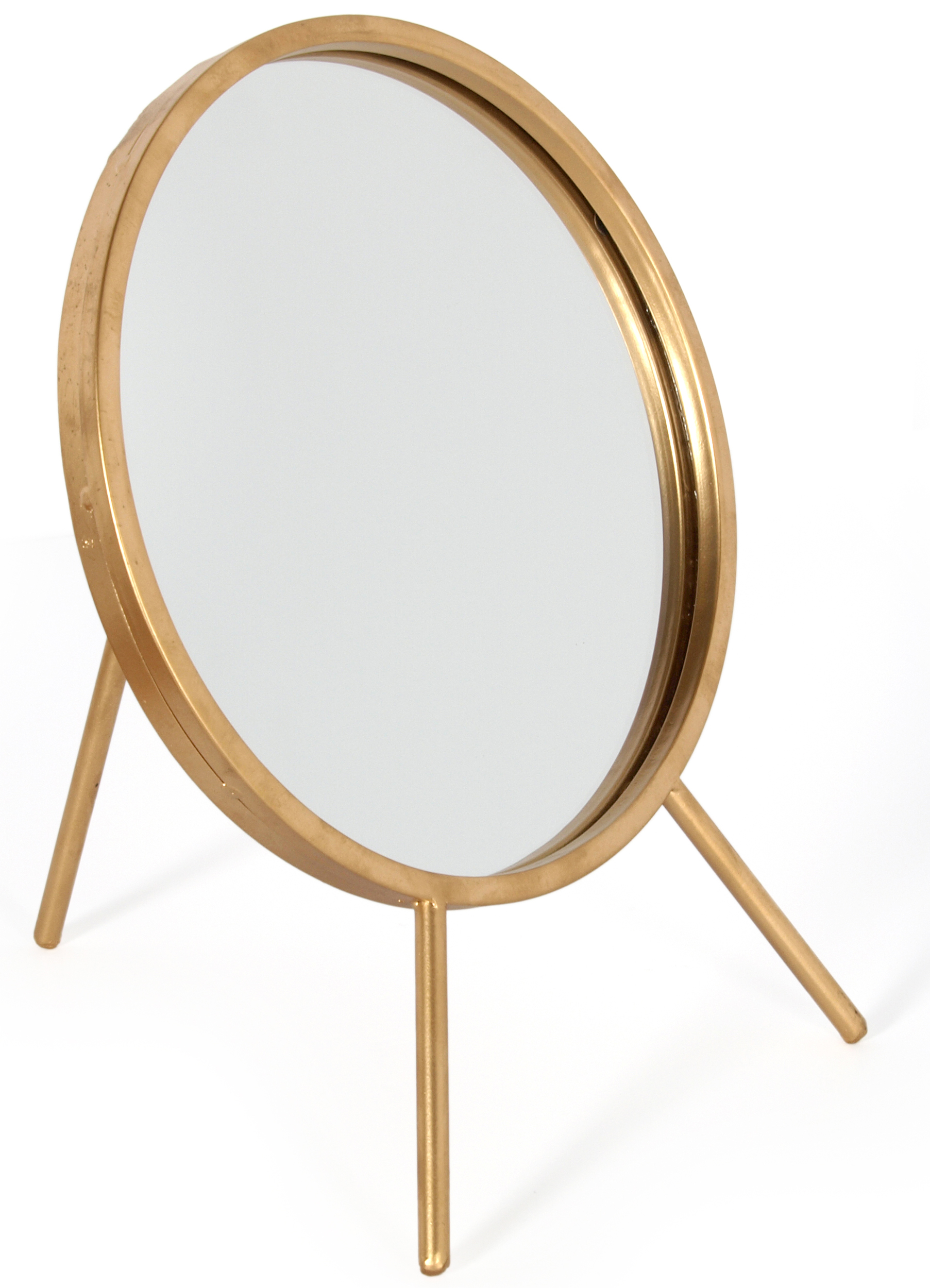 This tough, Danish-designed table mirror measures 30 cm in diameter and has a brass-coloured frame. It has a very stable stand and makes a nice detail in your home.