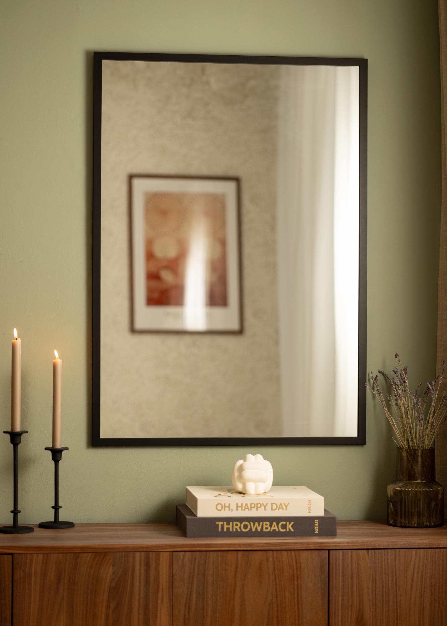 If you’re looking for a stylish wall mirror with a simple black frame, Black Wood is the perfect choice. The mirror is made from painted ayous wood and fitted with colourless mirror glass. The 22 mm wide frame has a traditional square profile that draws attention to the mirror glass itself.