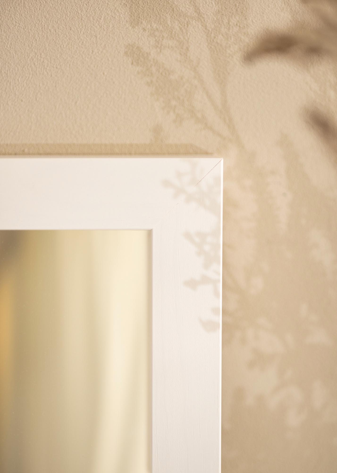 A pine picture frame made in Finland that's left untreated before it's painted white for a more genuine wooden feel. Boxholm White is 43 mm deep, which means that the mirror stands slightly off of the wall, which creates a gorgeous 3D effect.