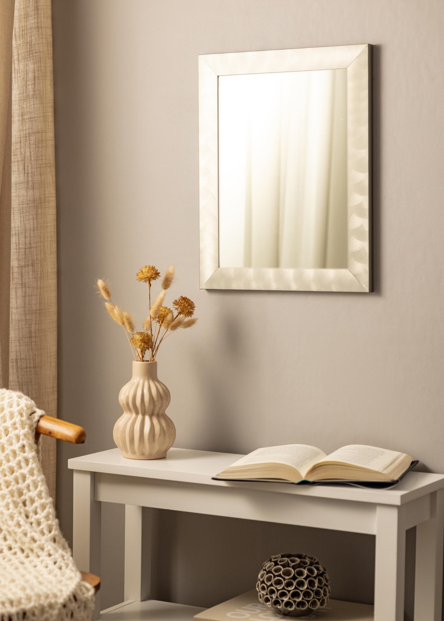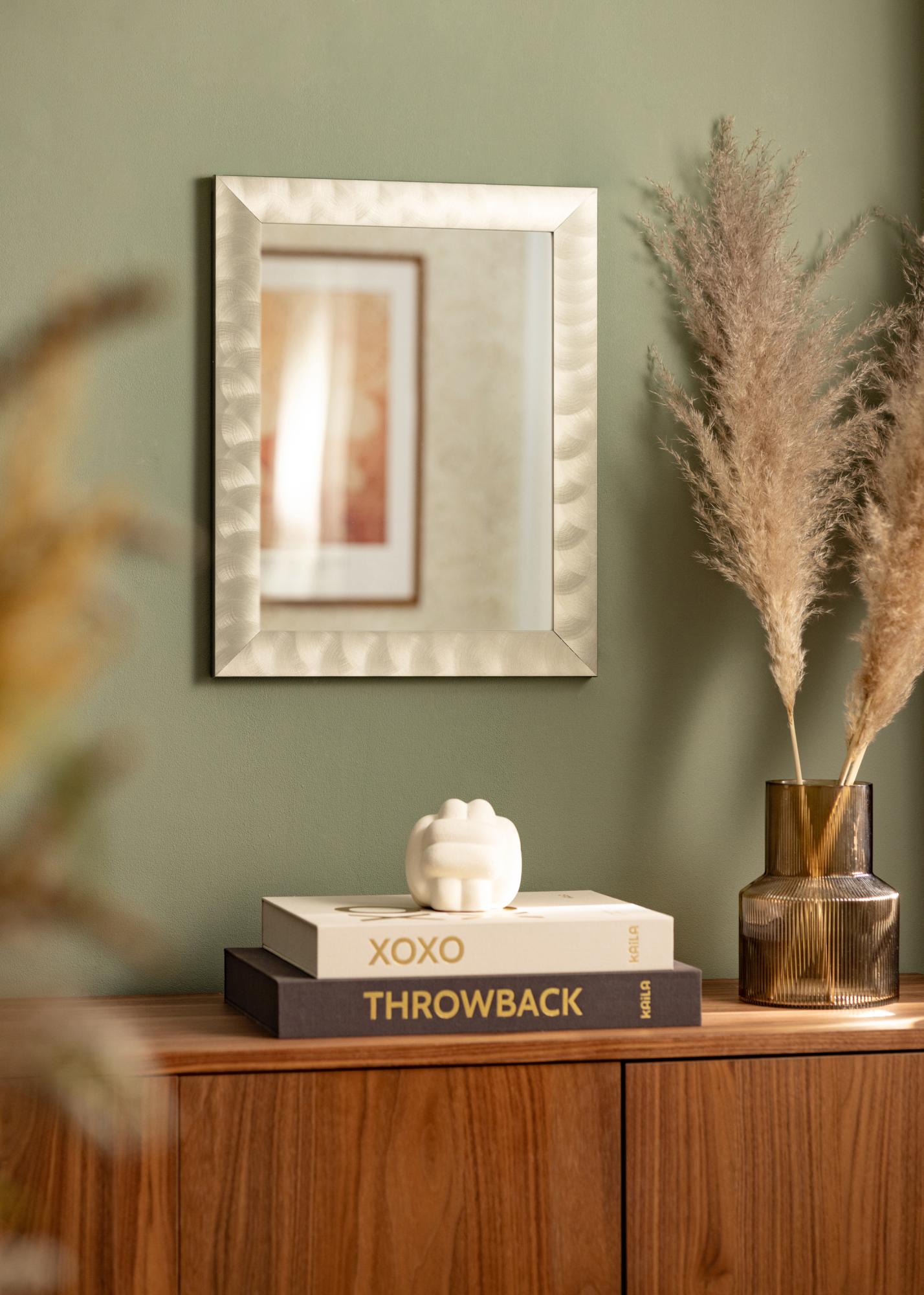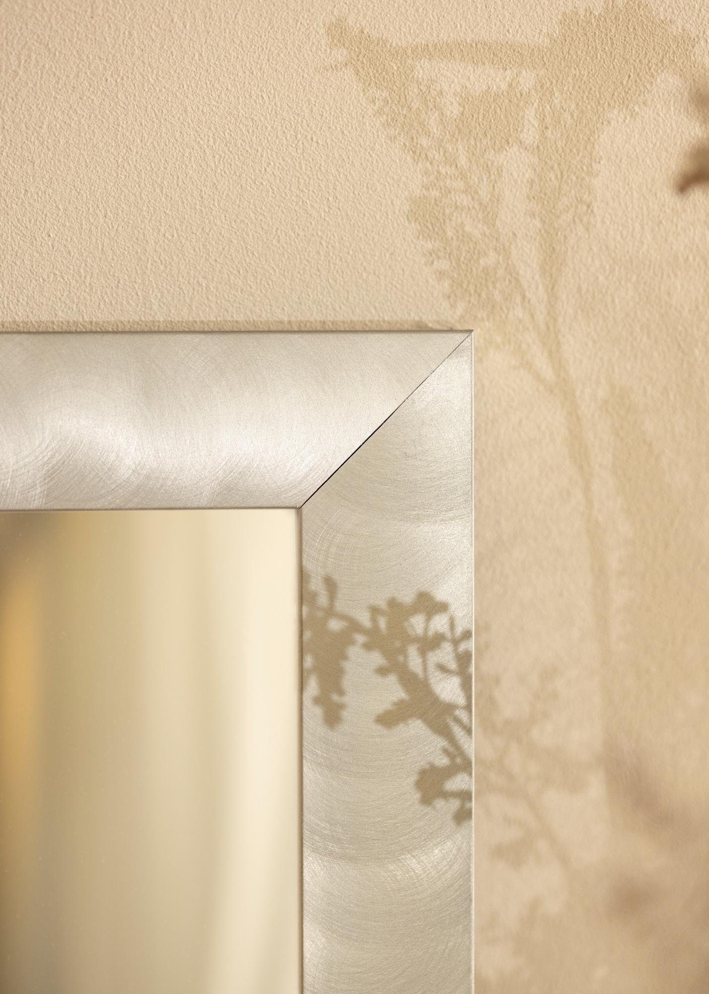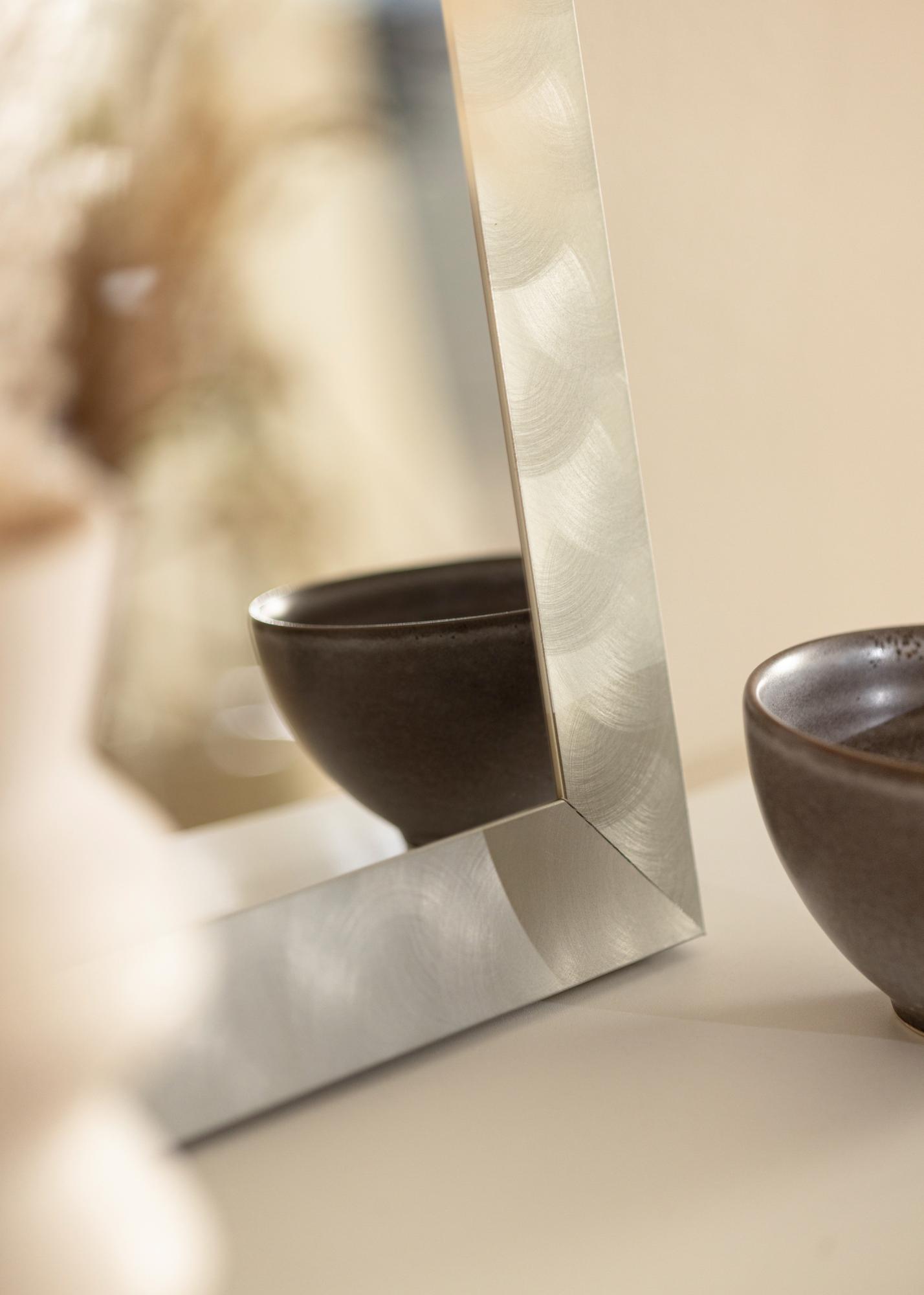 Discreet mirror with a wide, smooth, high-quality aluminium frame made in Germany. The frame has a look of bright steel, and with its pure design language it looks good in both minimalist and rural homes and all types of rooms. Hang the mirror in a room with wall art framed in silver or black and combine with interior accessories in greyscale to bring the space together.