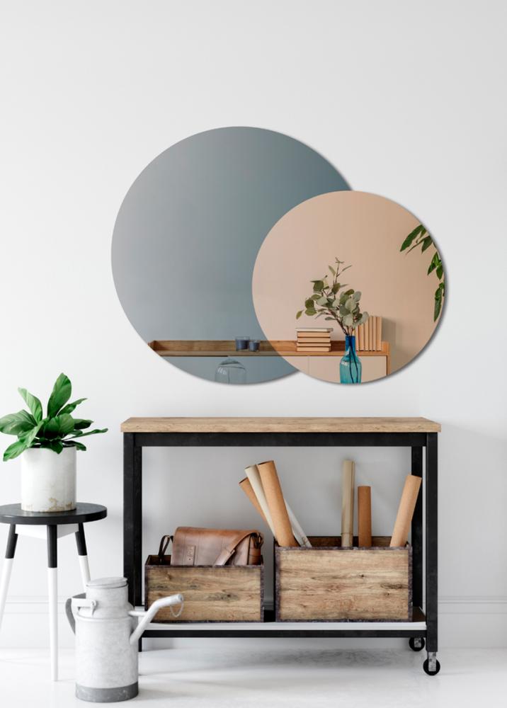 This is a very exciting and trendy mirror from Danish brand Incado which consists of two small circular mirrors. The larger mirror is colourless while the smaller one is tinted in rose gold - a truly beautiful complete mirror!