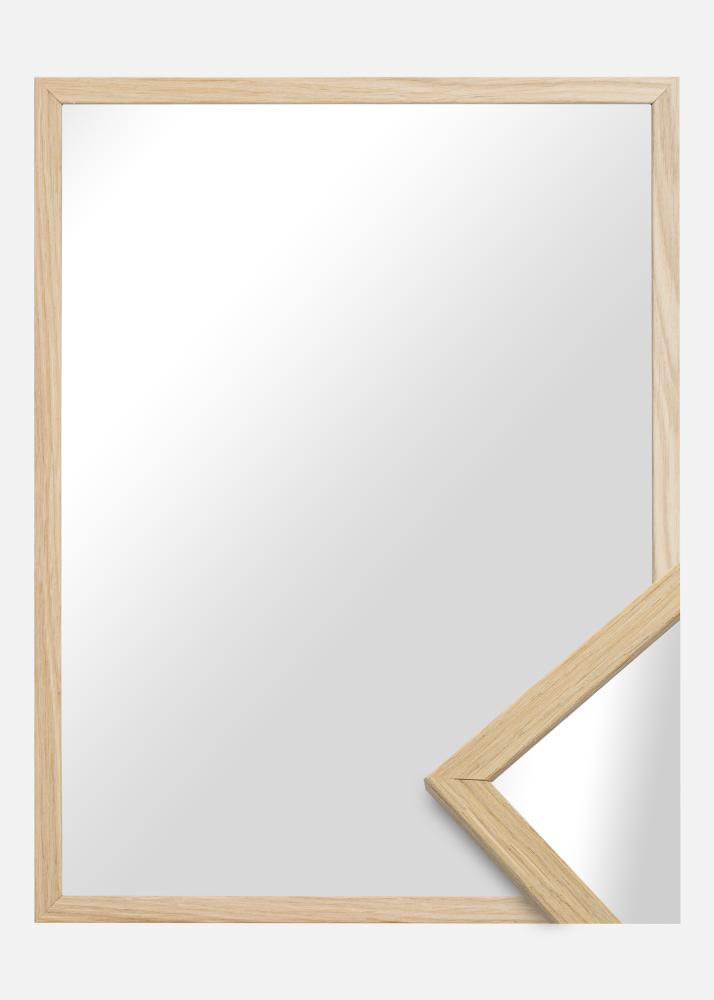 Sometimes we're asked why the mirror frame is made of oak veneer and not real solid oak if it's supposed to be a quality frame. The reason is that it's difficult to control the surface of the wood when it comes to real oak, meaning that you often get differences in the colour of different parts of the wood. In some contexts, that looks good, but in a frame, it risks looking as if parts of the frame are discoloured.