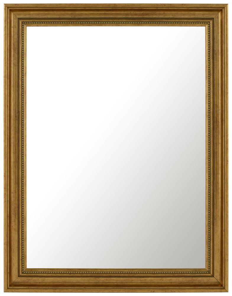 If you want to spruce up your wall with a beautiful gold mirror, we have hundreds to choose from! This mirror has a classically-designed frame with a cute pearl ribbon around the glass. The gold colour is broken by small splashes colour that add character.