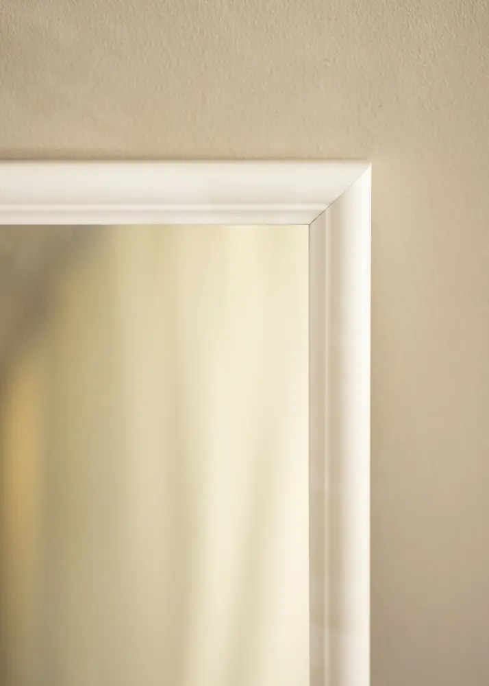 Högbo is a high-quality, elegant, white mirror that's perfect when you're looking for a luxurious mirror that's deep enough to stand slightly off the wall.