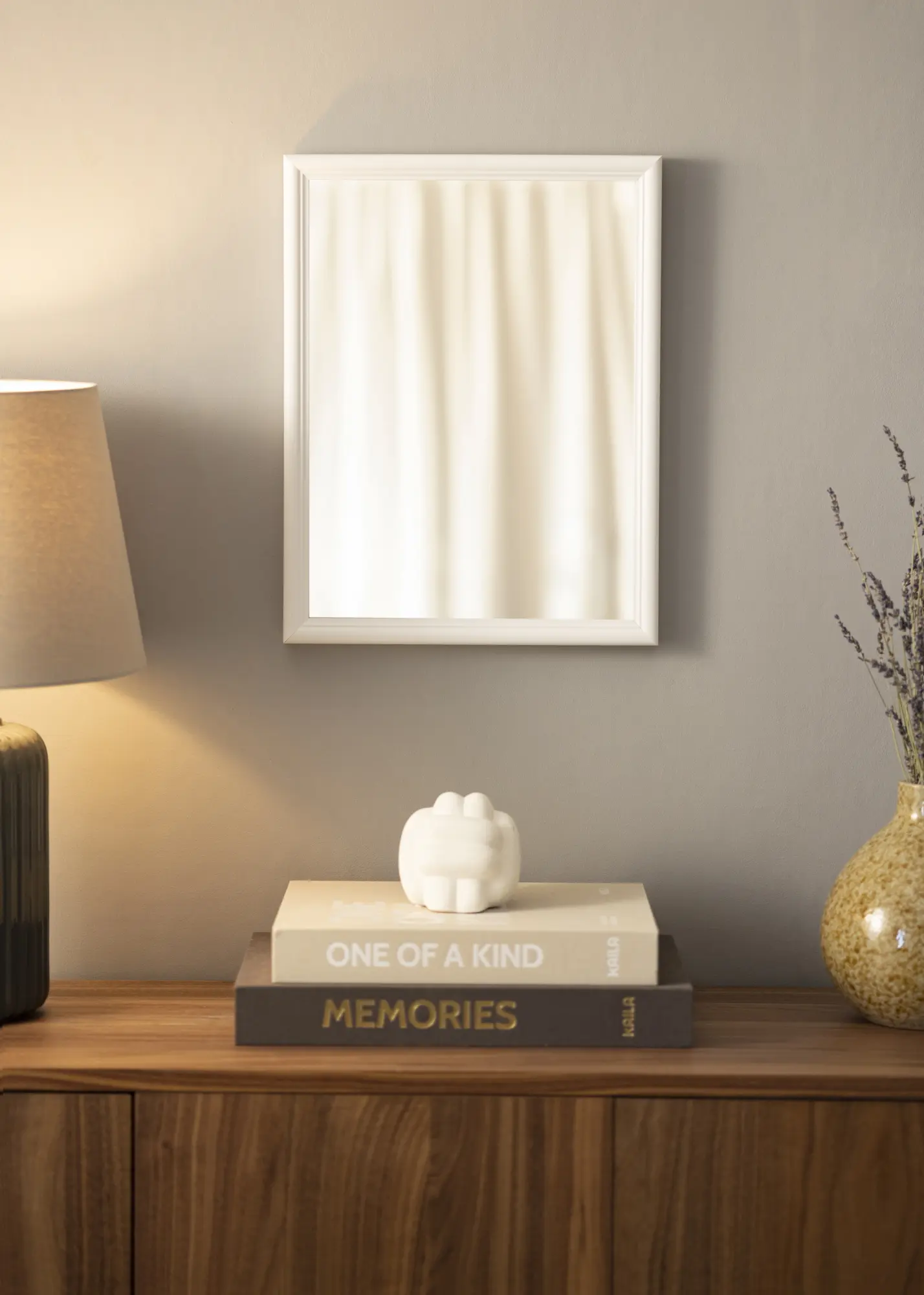 Start the frame selector »Högbo is a high-quality, elegant, white mirror that's perfect when you're looking for a luxurious mirror that's deep enough to stand slightly off the wall.