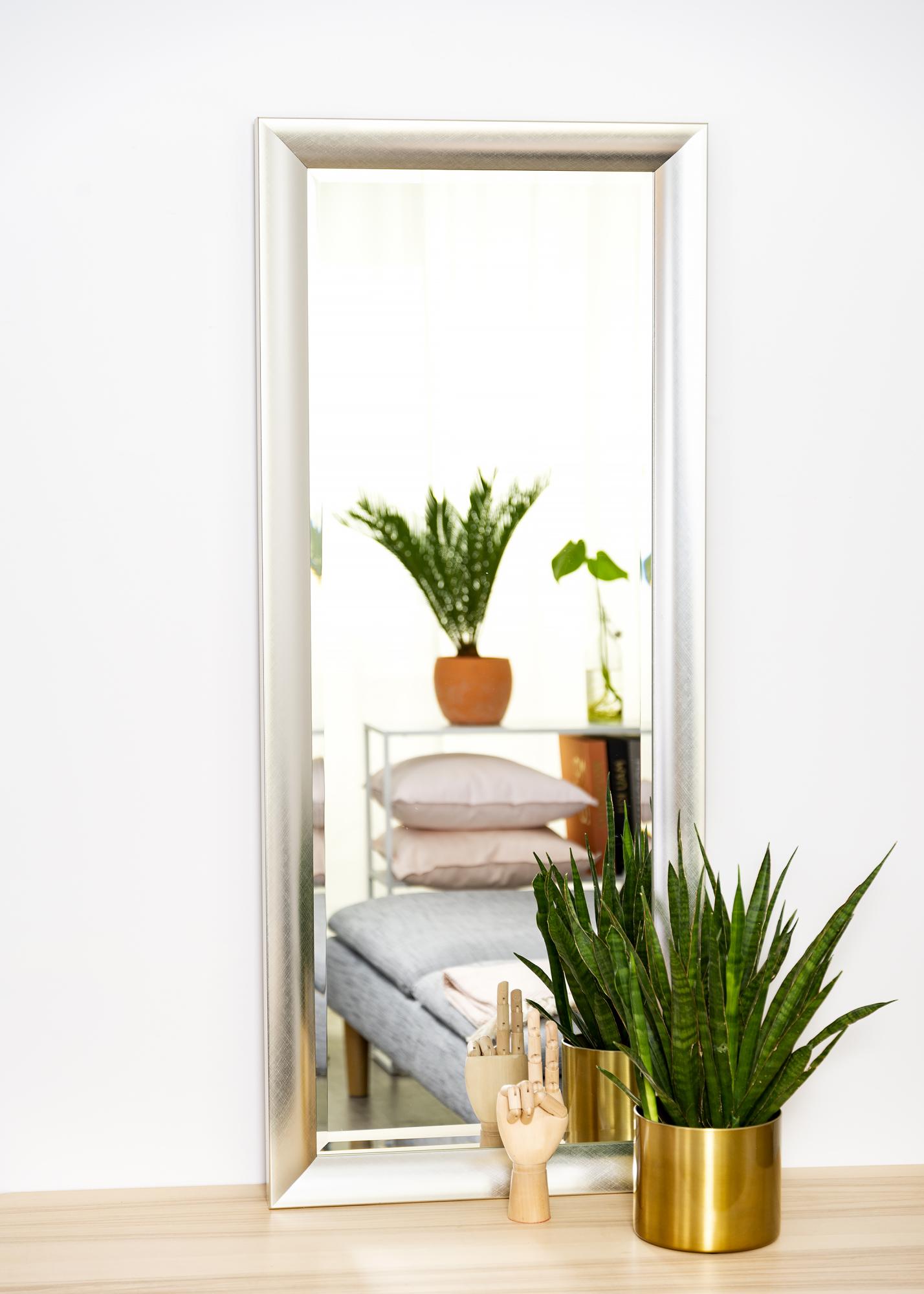 Add a touch of luxury to your space with this stylish mirror! The frame surface has a brushed symmetrical pattern which, together with the bevelled glass edges, creates a feeling of exclusivity. Choose between the dimensions 50x130 cm and 60x150 cm.