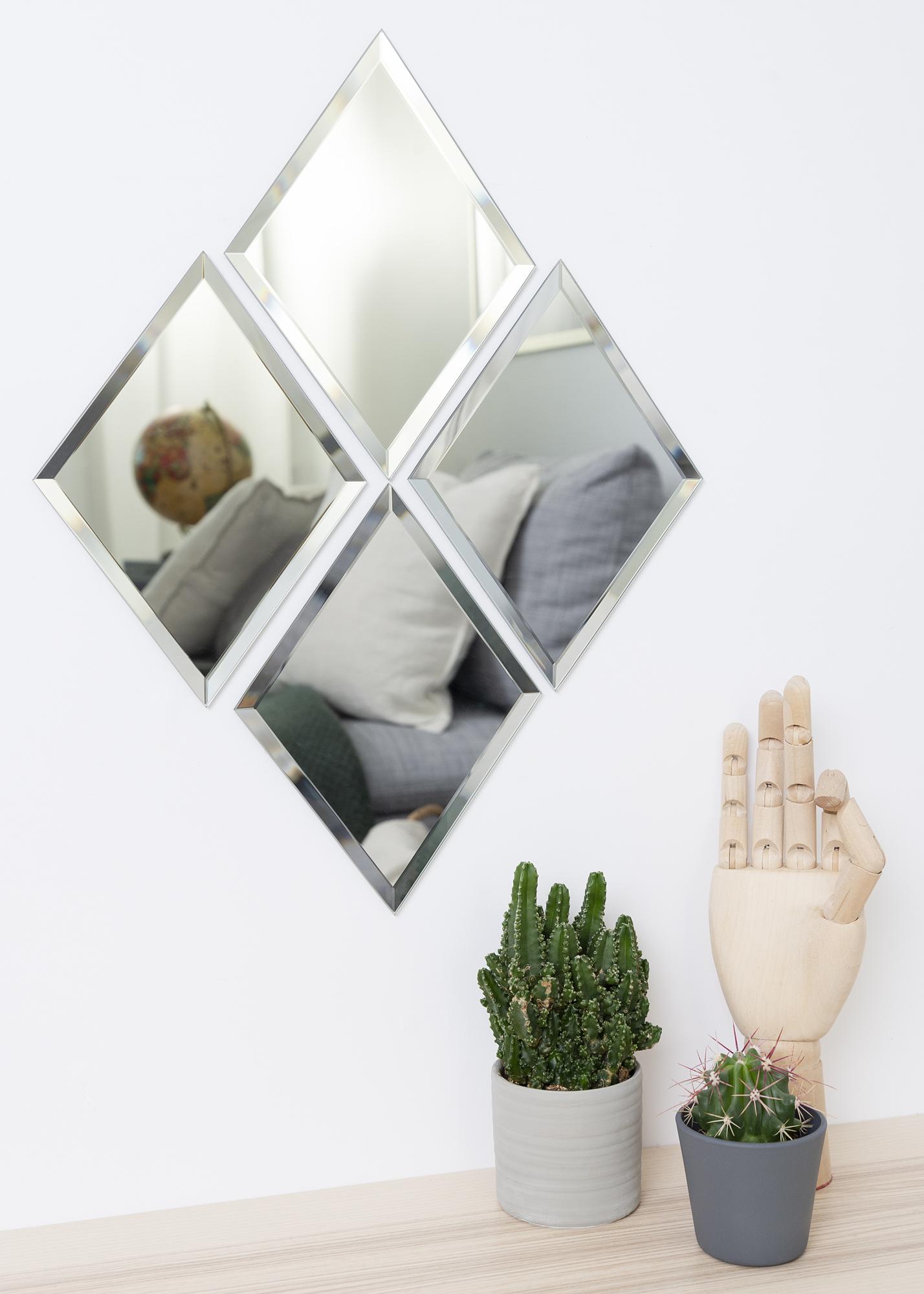 4 pack of stylish small mirrors from House Doctor. With their stylish grey colour and diamond shape, these mirrors are perfect for creating your own personal style. The mirrors are easy to set up with the included double-sided adhesive tape, and because they're also wet room certified, you can use them in the bathroom.