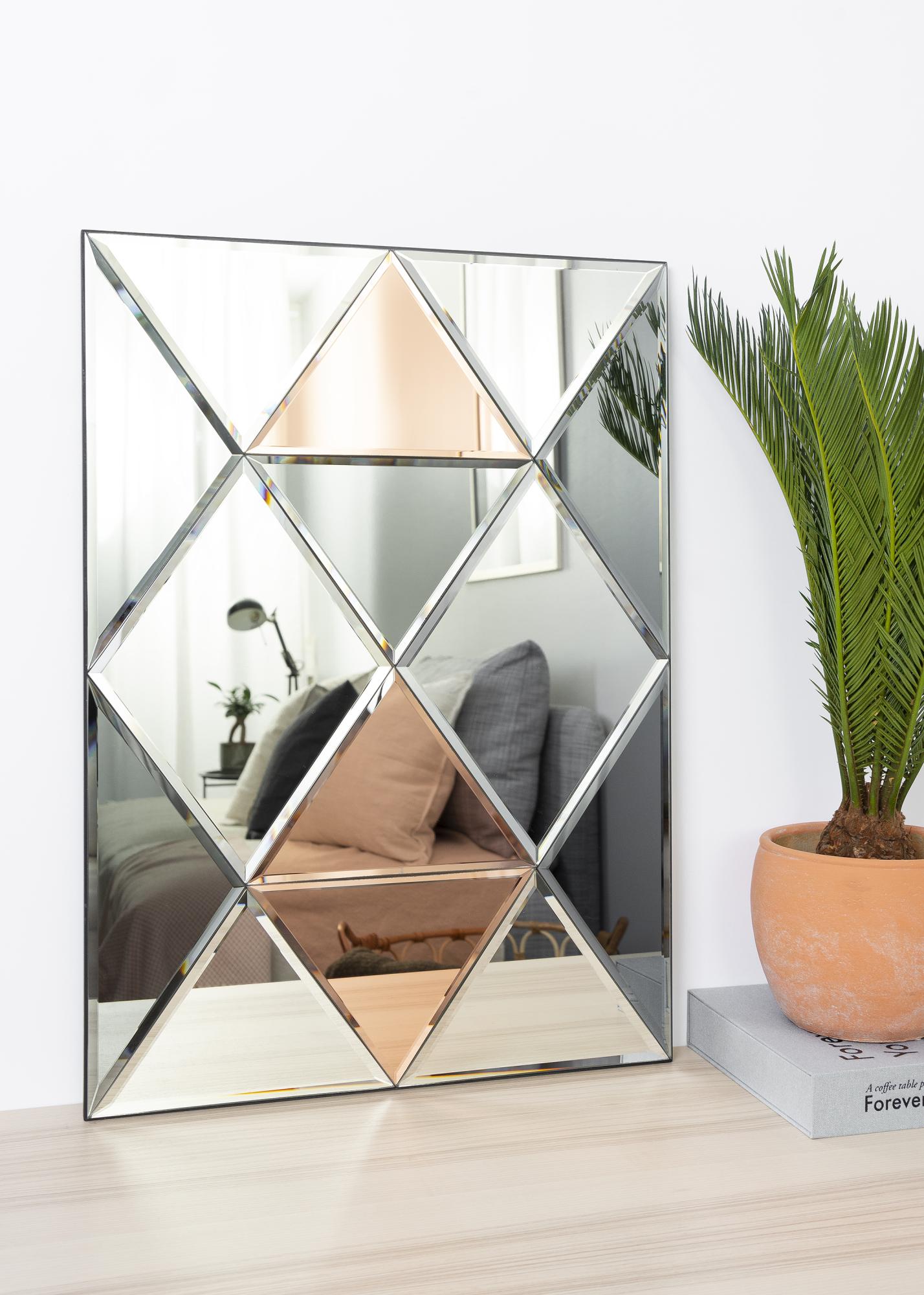 A unique mirror that's a decorative and artistic piece in the living room, bedroom or hallway. Also excellent in the bathroom. The mirror's name comes from its decorative rhombus-shaped carvings, which give the mirror its distinctive look.
