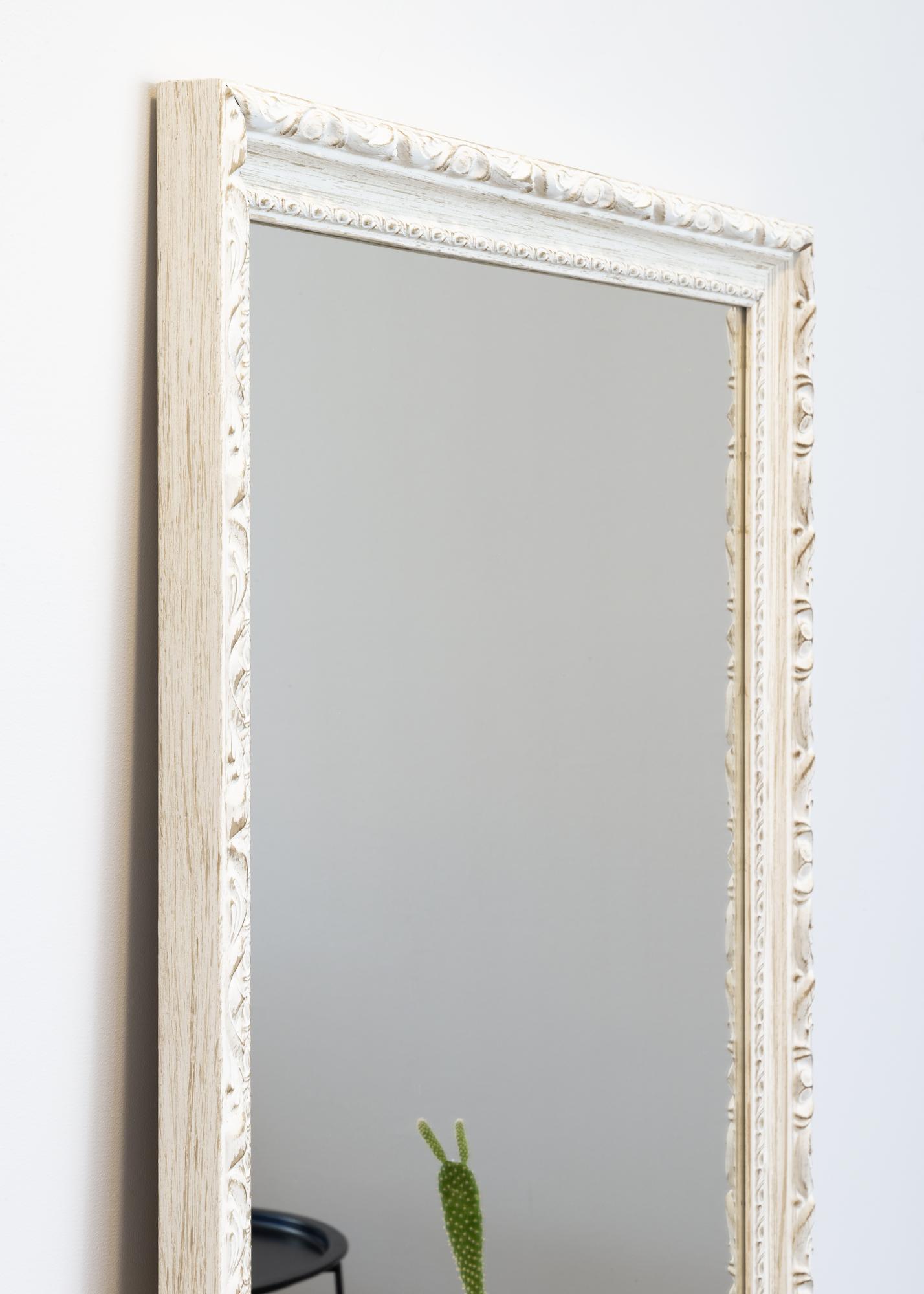 Start the frame selector »A white mirror in an antique style with a visible wooden texture and a width of 40 mm. An excellent choice if you're looking for a mirror that stands out and gets itself noticed.