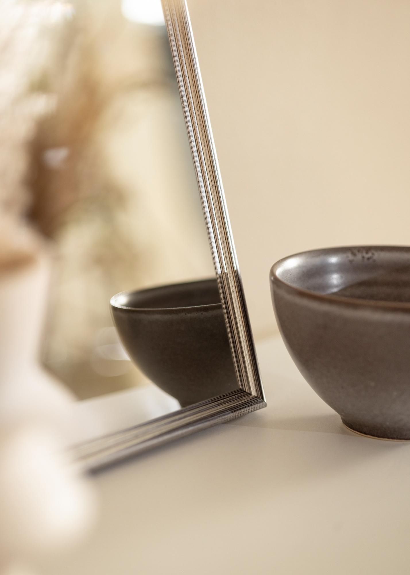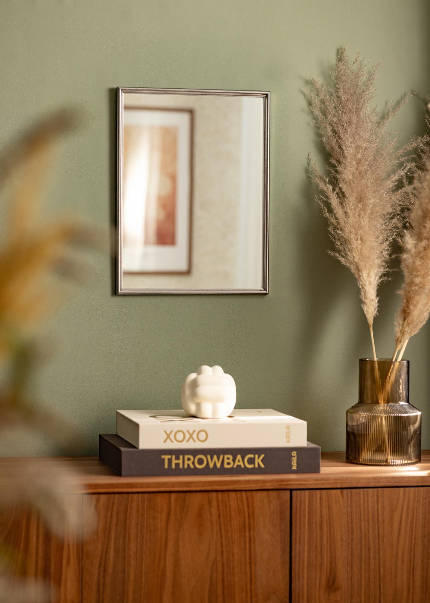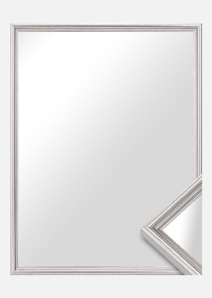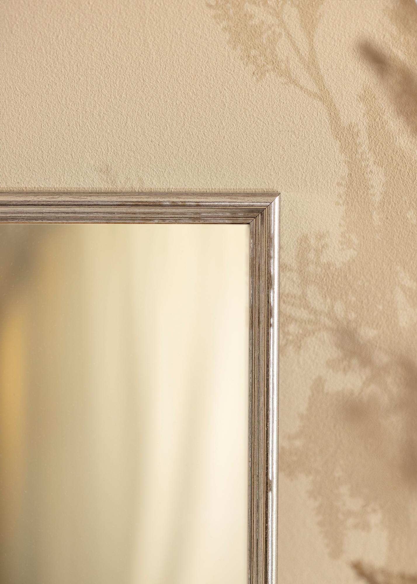 Let us manufacture a mirror that fits perfectly in your home! This elegant mirror is ordered to your own dimensions so that you can be sure it's the right fit. The mirror has a classically profiled frame that is painted in a glossy silver colour. Matches nicely with interior components in, for example, black, white, and purple.