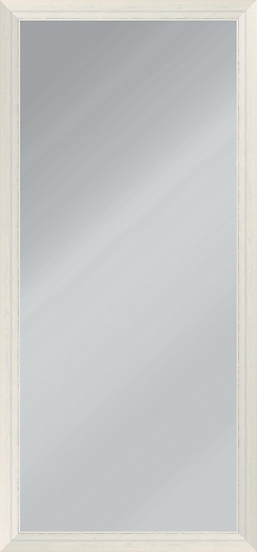 A stylish, antique-looking white wooden mirror in which you can see the texture of the tree rings through the paint. A mirror that works as a wall mirror in the hallway or wardrobe, but also above a sideboard or sofa in the living room. The pure design language means the mirror fits into all types of spaces, like above a buffet table in a country kitchen or in the changing room at the gym. By hanging the mirror opposite a window, you make the room seem larger and bring in more light.