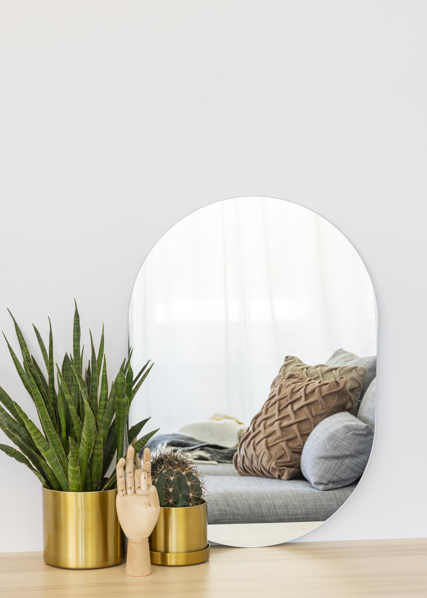 Start the frame selector »An ovular, edgeless mirror. The perfect accessory in the living room or hallway.