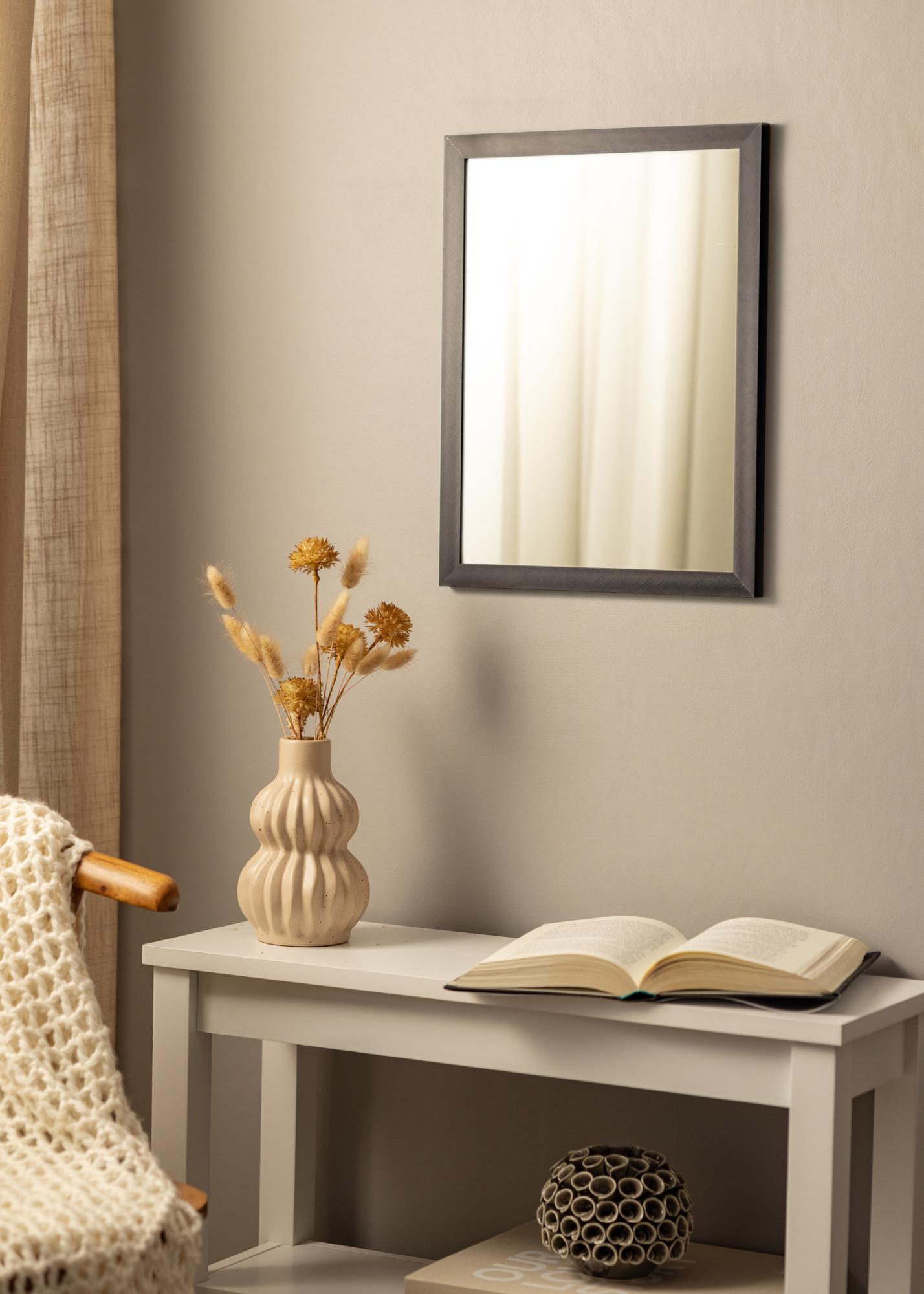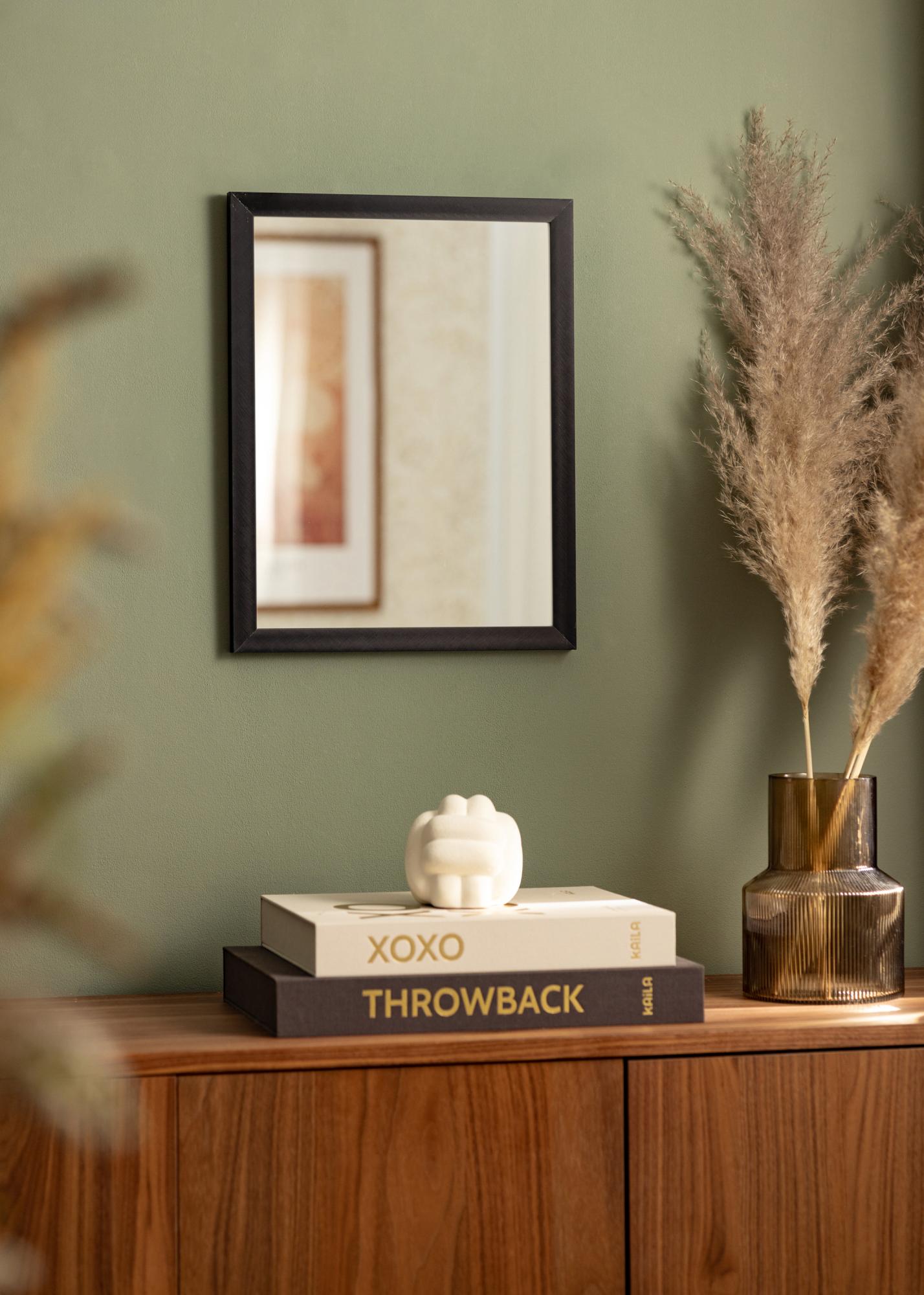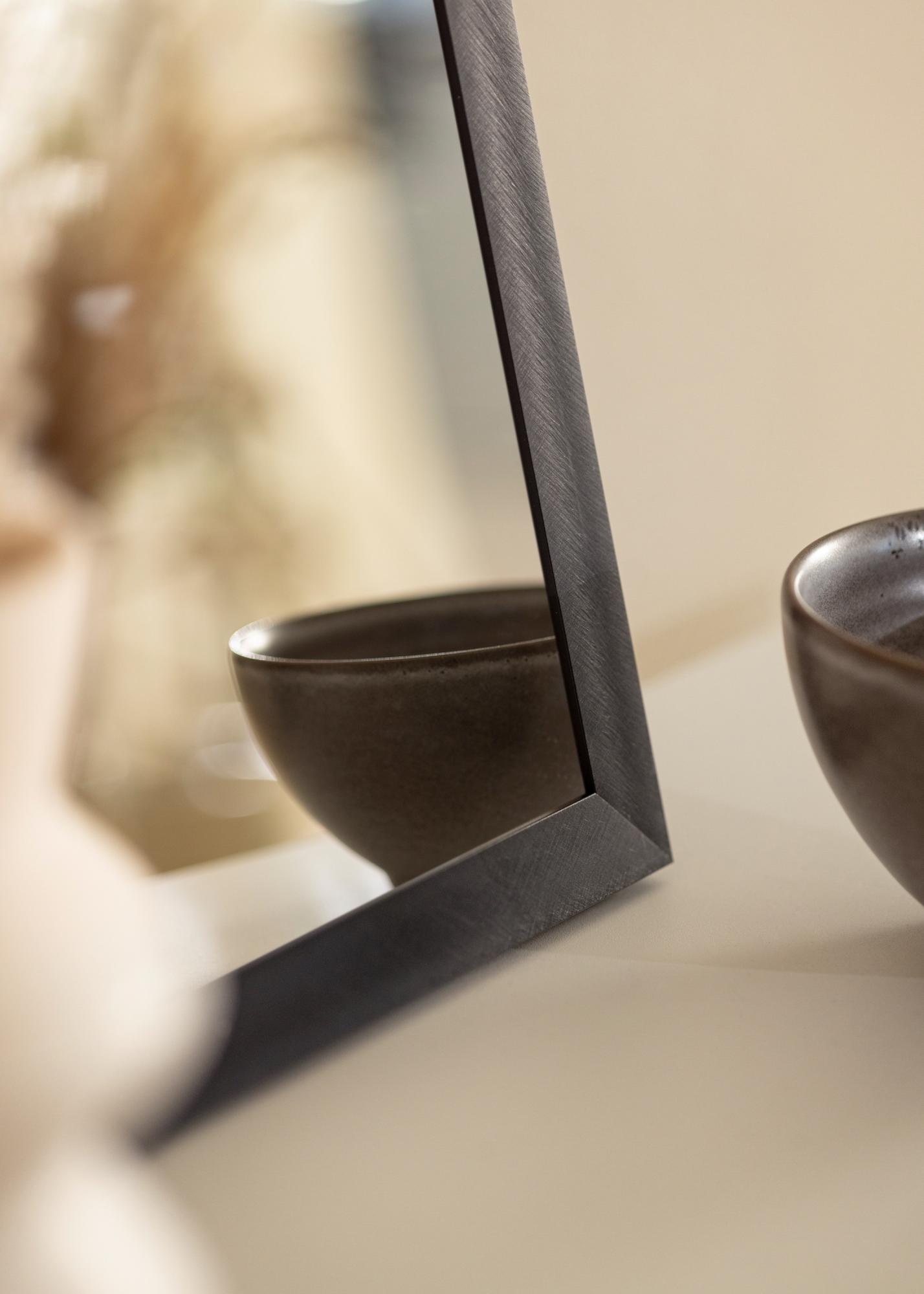 A stylish black mirror with an aluminium frame that looks good in all types of spaces and homes. The black frame is narrow and has a minimalist look but feels stable. Because of the austere shape of the mirror frame, the mirror is easy to place and looks good combined with posters and prints in black frames. A mirror can also be used to make a room feel bigger, or to light up a dark space when placed opposite a window.