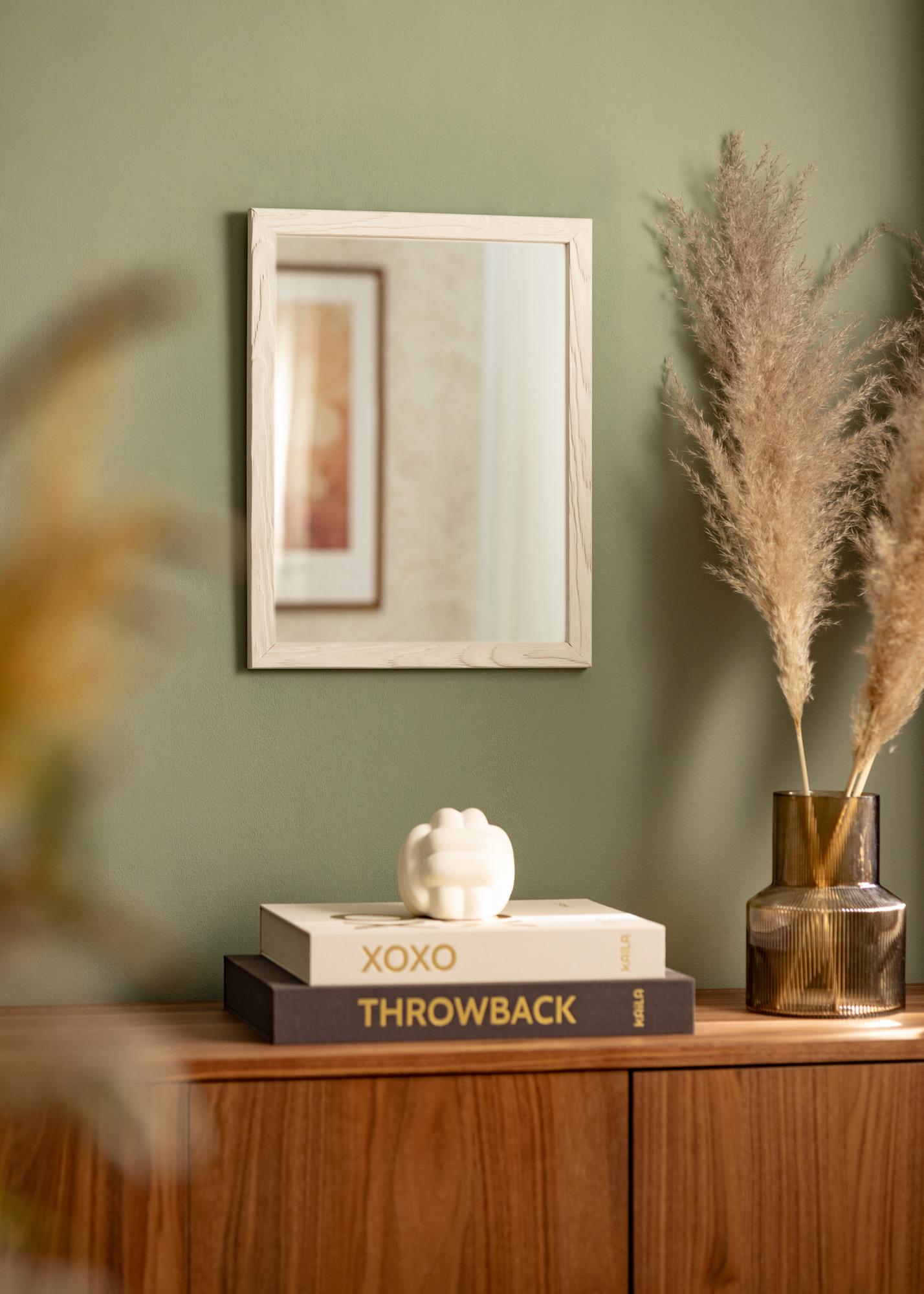Give your bathroom, hallway or living room a lift by hanging this elegant mirror on the wall. The mirror has a simple and stylish design with a white glazed frame. Because it's made to your specifications, you can be sure it'll fit exactly where you want it to. The design looks just as good in a modern space as it does in a rustic or romantic one!