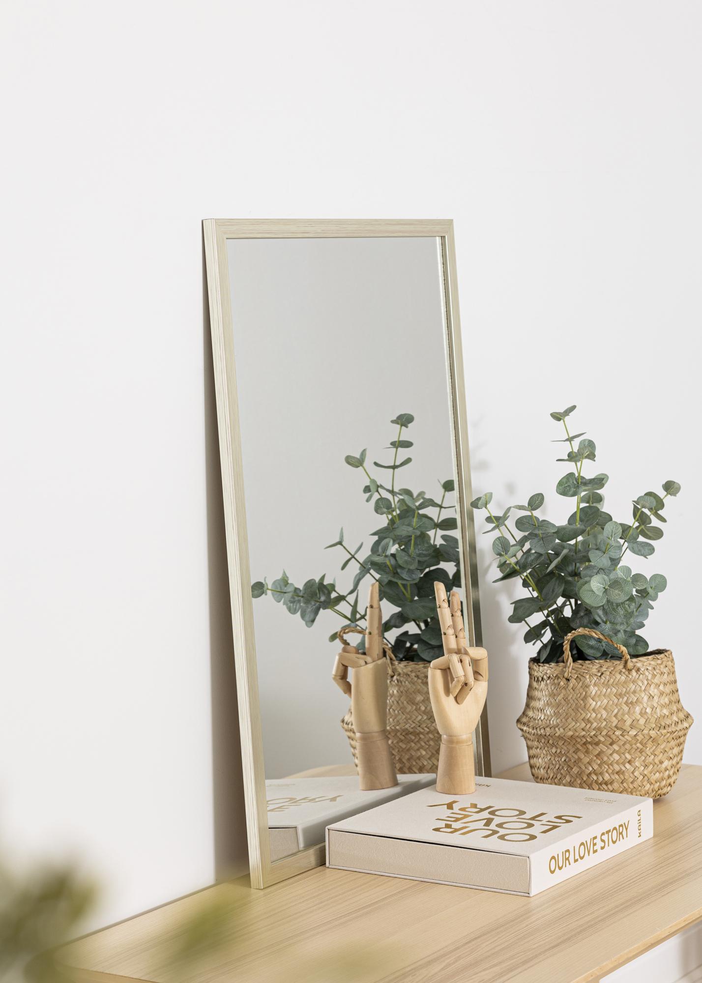 This mirror is made from ayous wood painted in a stylish shade of silver. The frame is 22 mm wide and has a straight profile creating a subtle, understated overall look. Hang this mirror in your hall, bedroom or living room, and it will reflect light beautifully around the room it.
