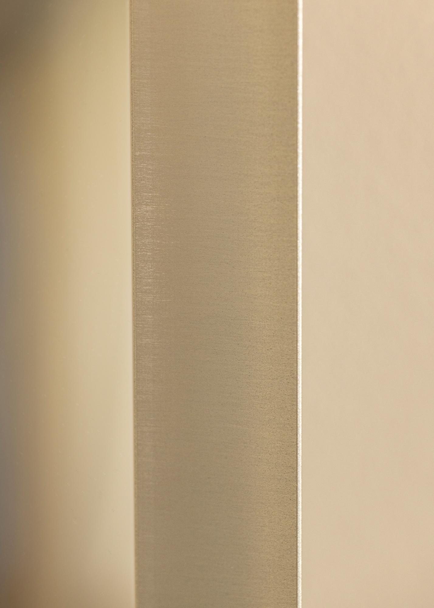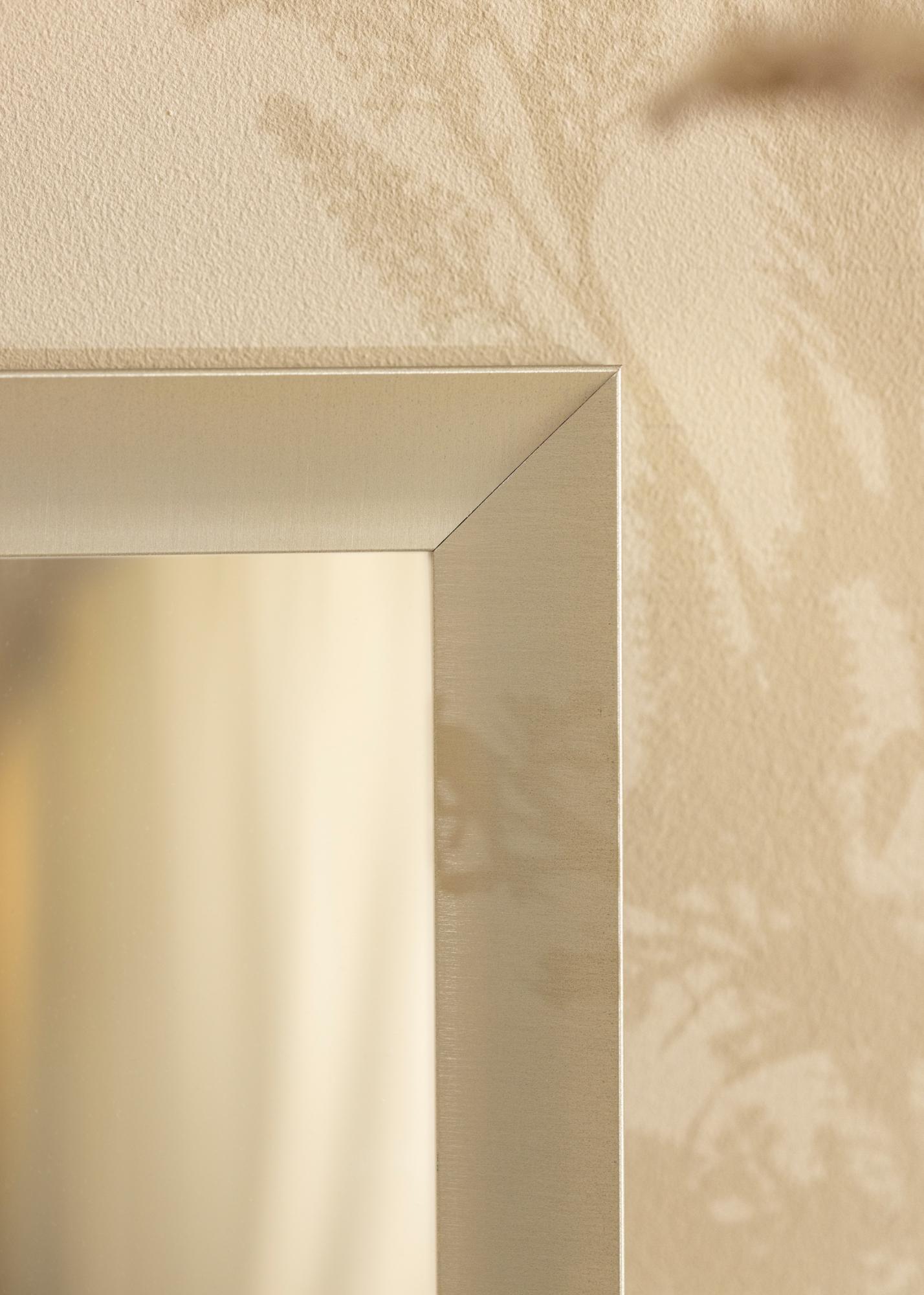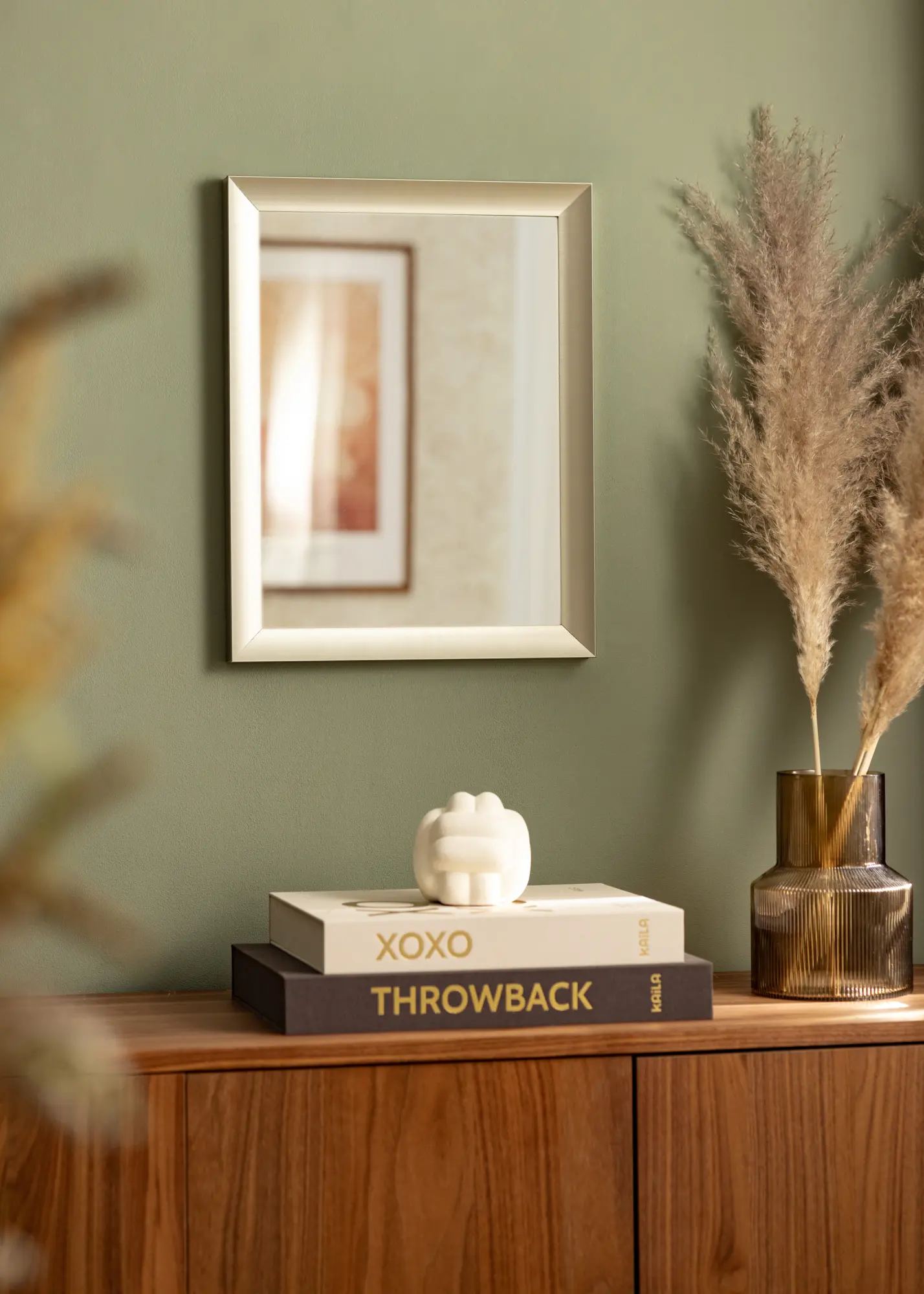 A stylish mirror made of high-quality aluminium with a diamond-coloured frame and rounded form for a nice soft look. The mirror's neutral colour and clean shape mean it looks good in all rooms and homes, but it works particularly well with pastel colours. Hang the mirror together with graphic posters and photographs in black frames and combine with black or glass interior design pieces for a uniform look in the room.