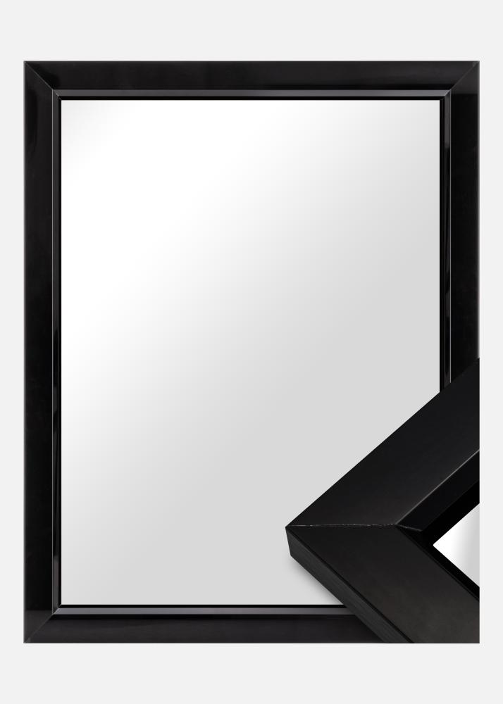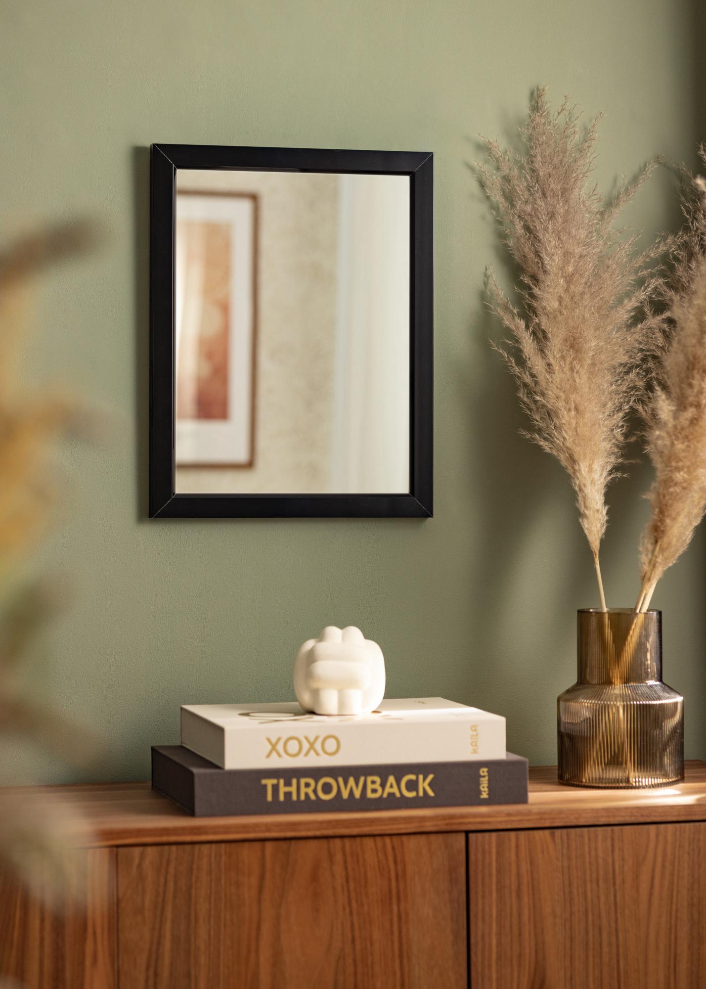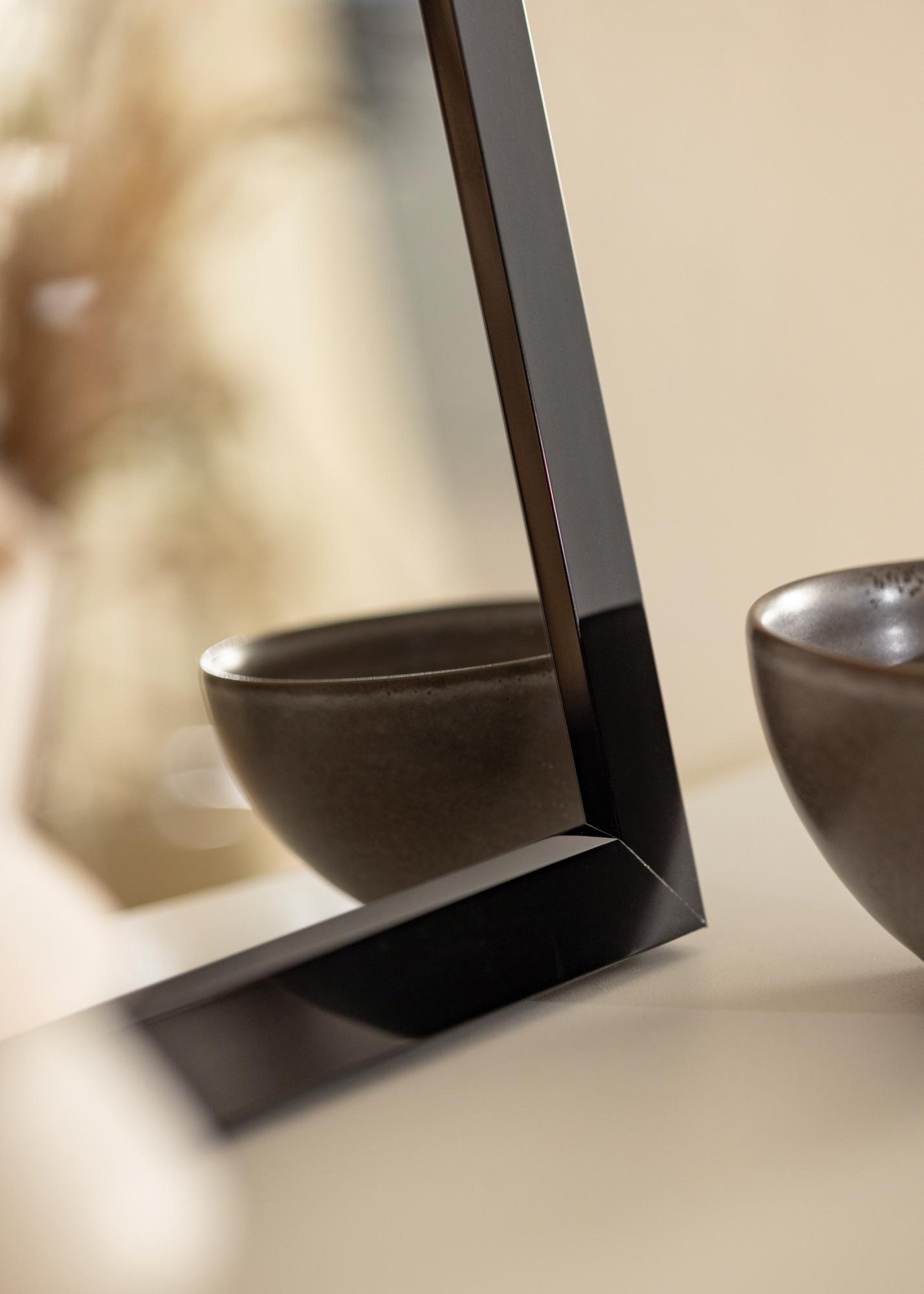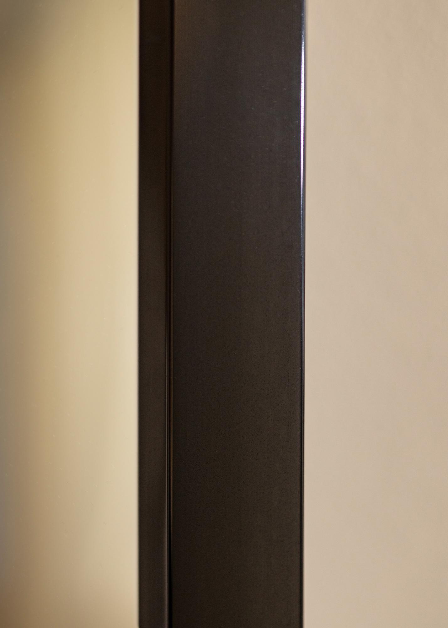 A stylish, black, high-gloss mirror, with an aluminium frame with an inner bevel. The graphic mirror's masculine feel can provide an interesting contrast to a softer space, but the glossy lacquering also means that the mirror looks good in modern, industrial interiors. Hang the mirror with posters and prints in black frames. By placing the mirror opposite a window, you make your room feel bigger.