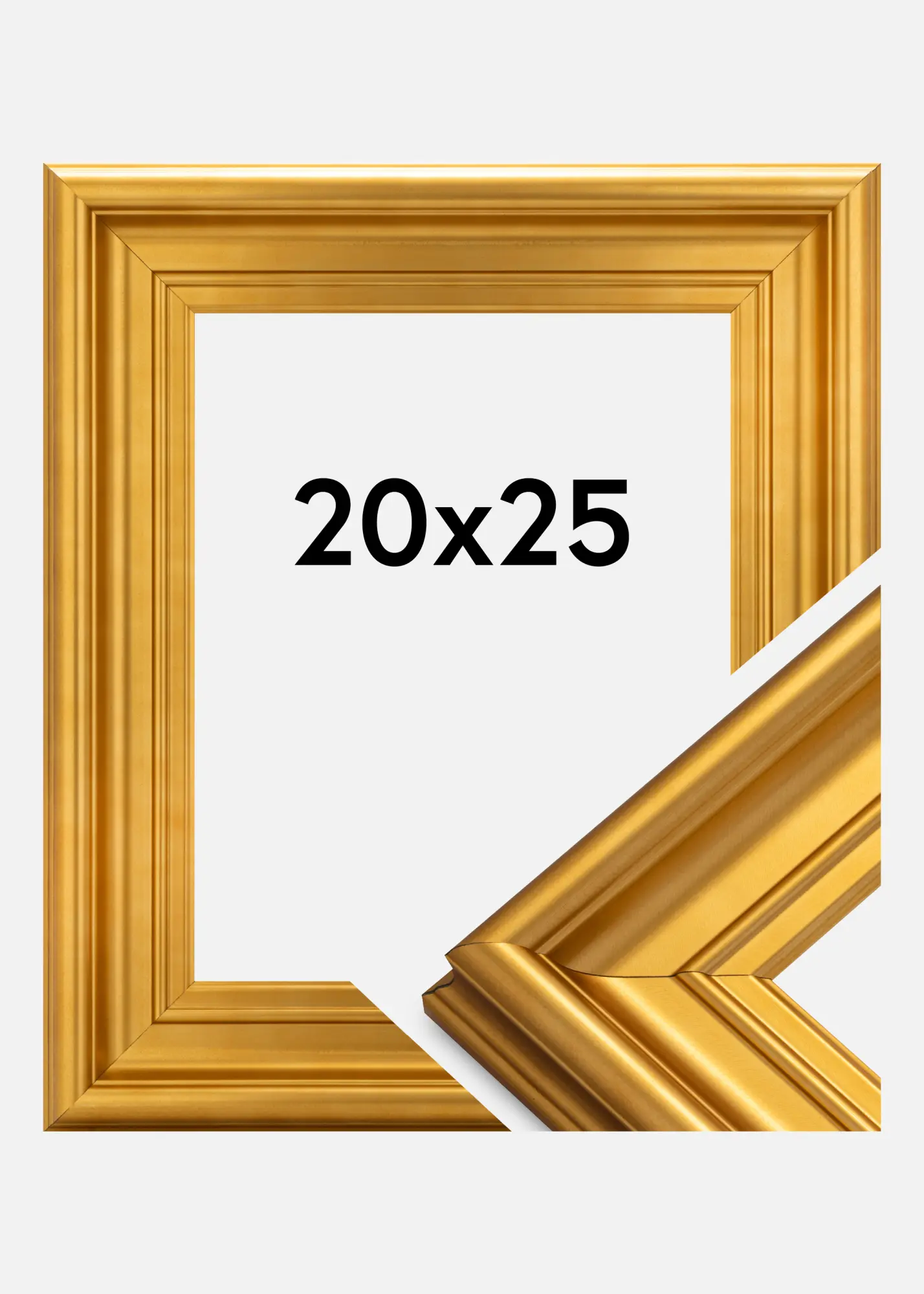 Mora Premium Gold is one of our finest photo frames. Made of wood from our wonderful Swedish forests and assembled in our own frame workshop. This means that we can promise a quality above the average. The picture frame has a soft gold-coloured profile in the old, painted style, with a width of 57 mm. Perfect for your finest photos!