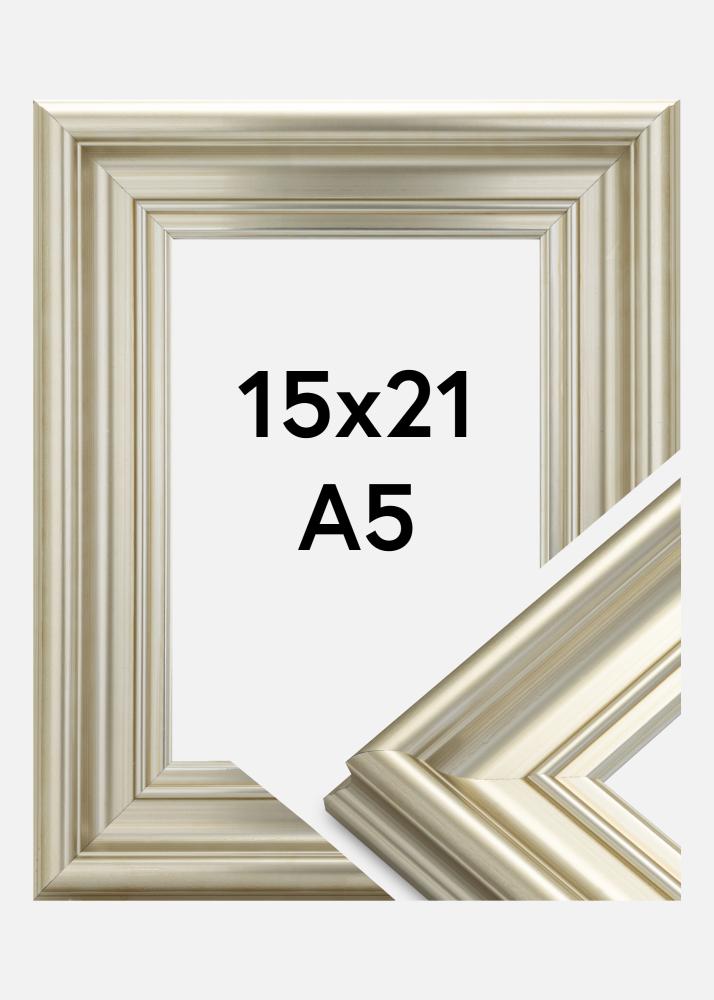 Mora Premium Silver is one of our finest photo frames. Made of wood from our wonderful Swedish forests and assembled in our own frame workshop. This means that we can promise a quality above the average. The picture frame has a soft gold-coloured profile in the old, painted style, with a width of 57 mm. Perfect for your finest photos!