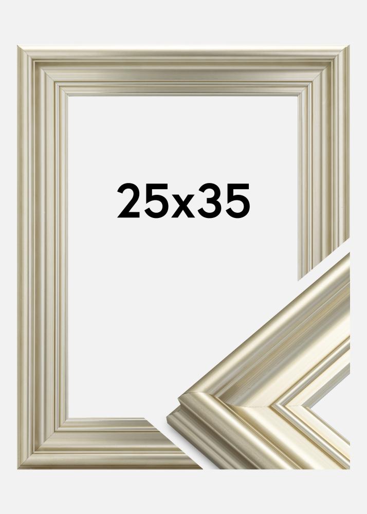 Mora Premium Silver is one of our finest photo frames. Made of wood from our wonderful Swedish forests and assembled in our own frame workshop. This means that we can promise a quality above the average. The picture frame has a soft gold-coloured profile in the old, painted style, with a width of 57 mm. Perfect for your finest photos!