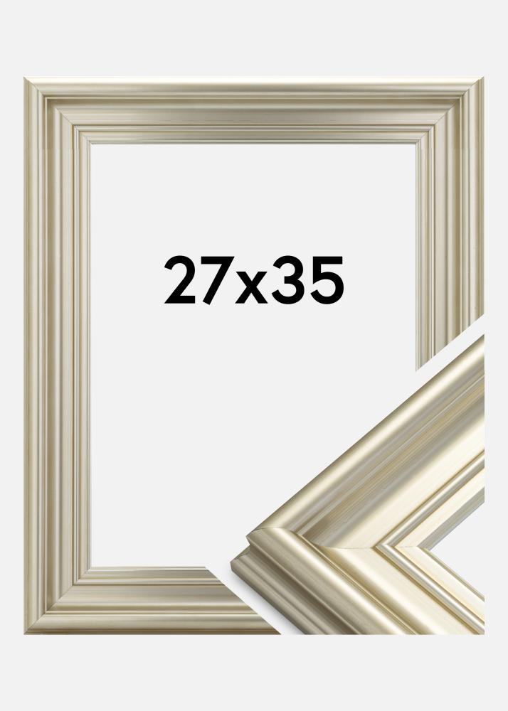 Mora Premium Silver is one of our finest photo frames. Made of wood from our wonderful Swedish forests and assembled in our own frame workshop. This means that we can promise a quality above the average. The picture frame has a soft gold-coloured profile in the old, painted style, with a width of 57 mm. Perfect for your finest photos!