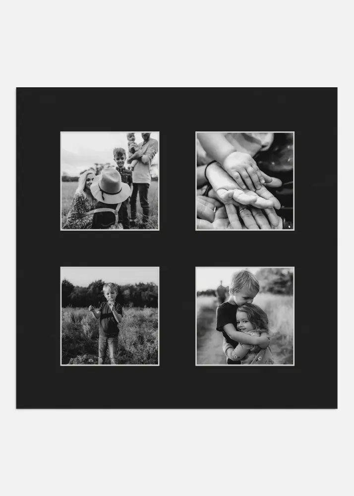 Acid-free black collage mount with bevelled white edges of the highest quality. Perfect when you want to make your own personal photo collage.
