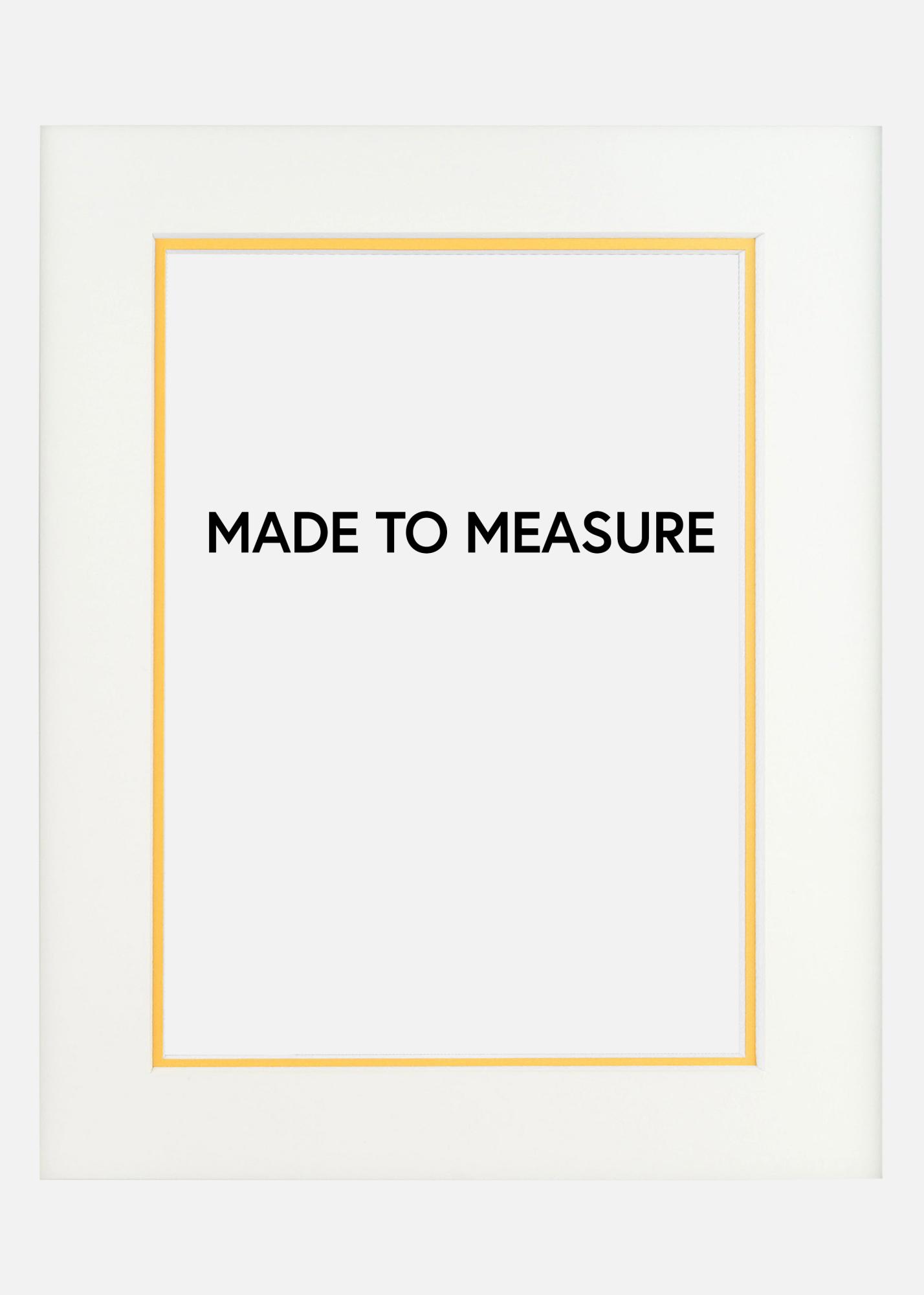 Custom-made mounts in two layers, with a white mount as a base and a lower layer in yellow, which gives a coloured edge of 5 mm around the image. Perfect when you want to produce an effective setting, that highlights your image and gives extra depth to the subject. All our mounts have nicely-cut edges at a 45 degree angle, which gives a serious and professional framing to your photos.