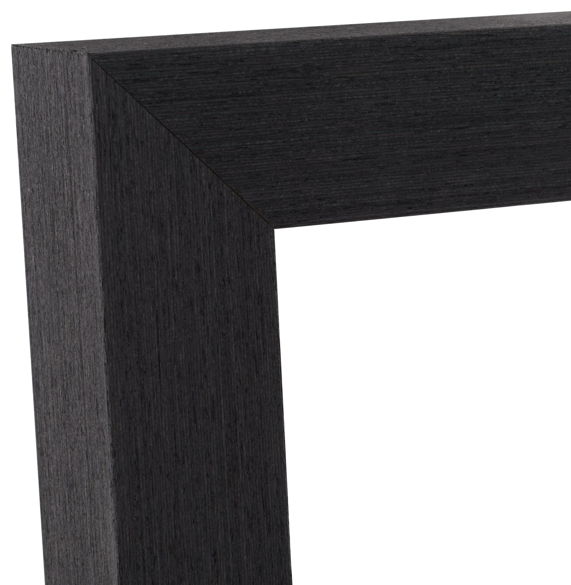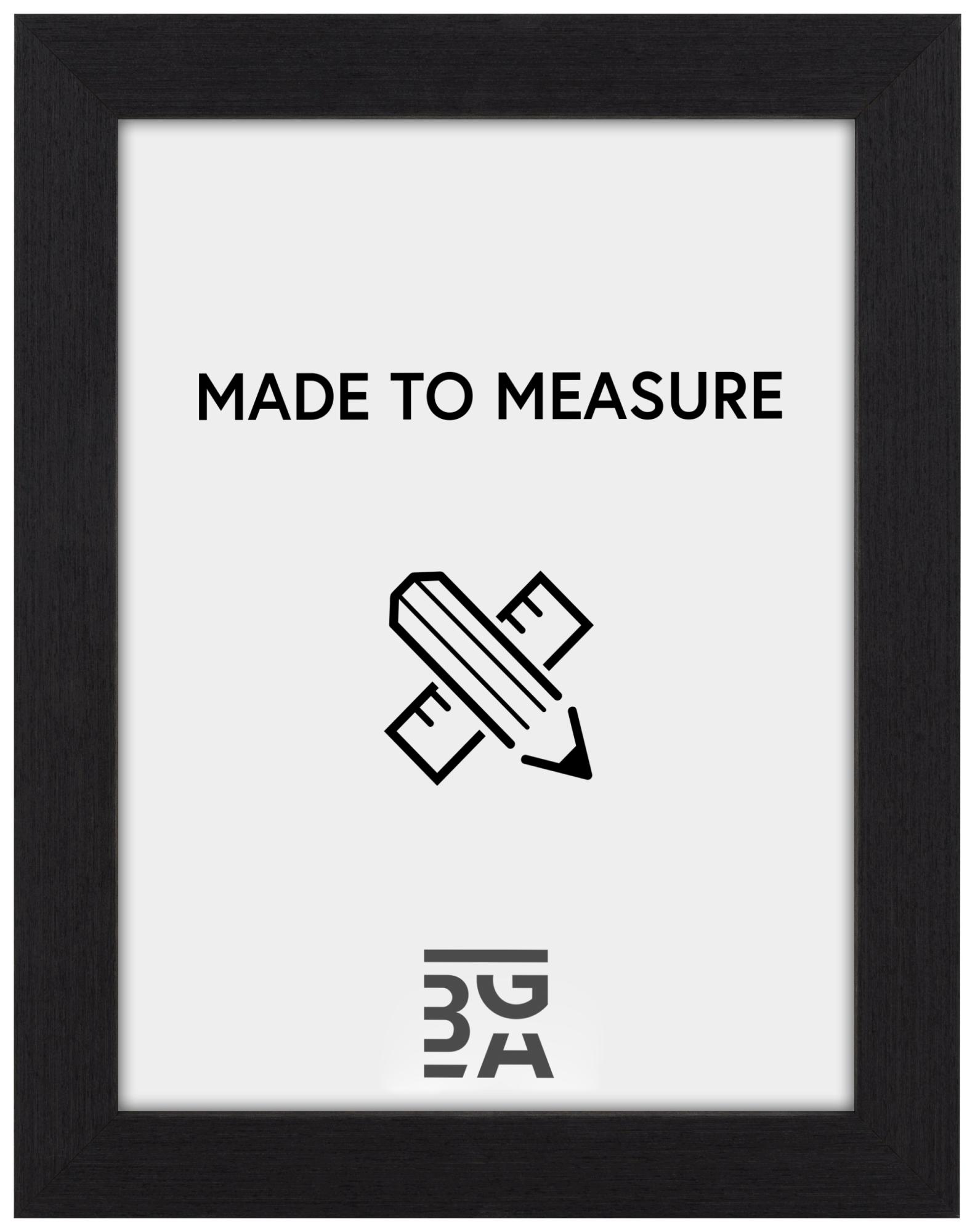 This custom-sized frame is manufactured in our own frame workshop, which means you can get it in exactly the size you want. The frame's moulding is 39 mm wide and has a depth of 52 mm, providing a stable and robust feel. Made from pine, this frame offers both durability and a natural beauty that complements its elegant black finish.