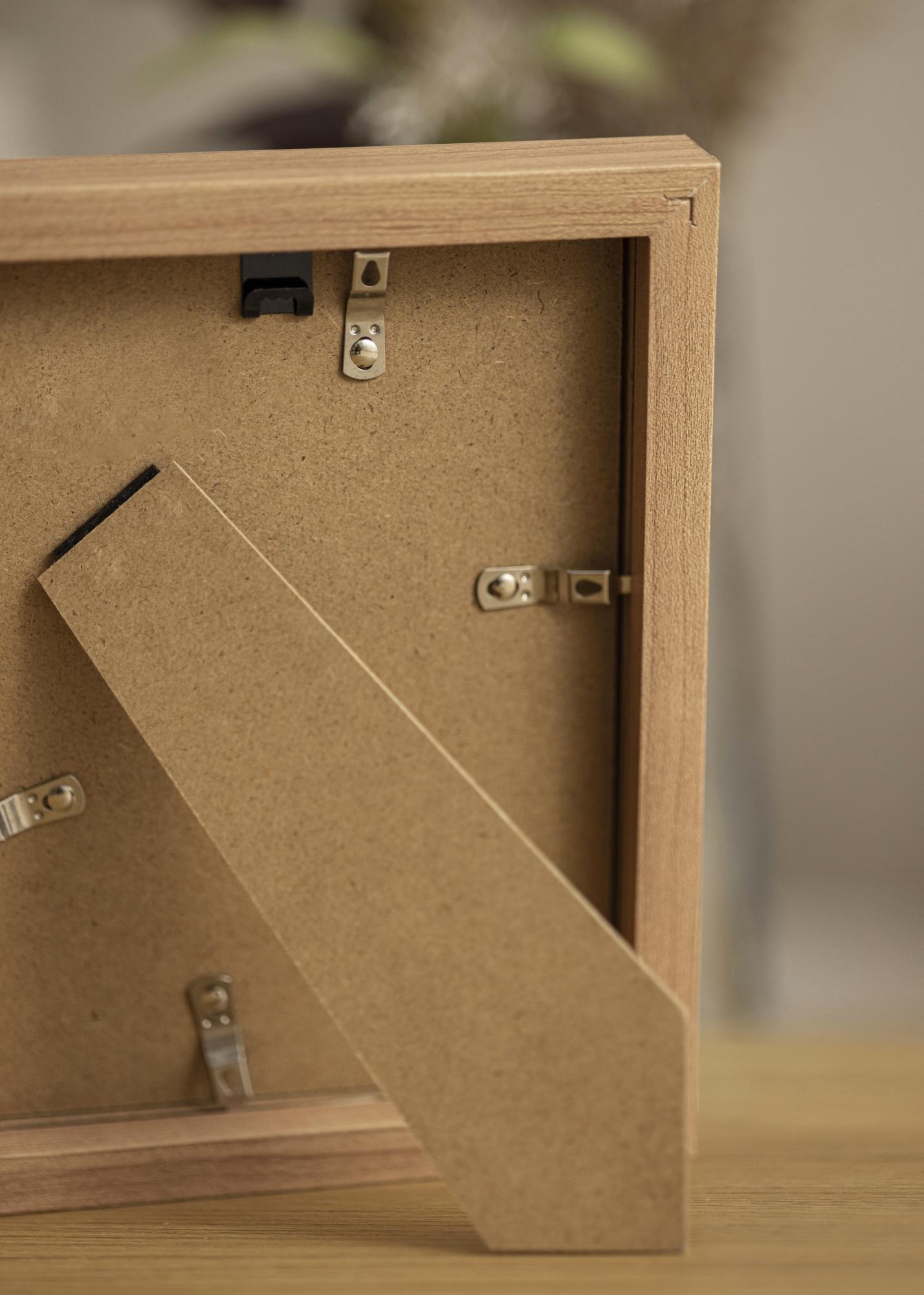 This frame, in a lovely shade of beech, matches brilliantly with your most elegant images and will become a fabulous natural feature in your decor. Whether you want to frame black and white photographic art or cute drawings your child made, this earthy frame will make your image the centre of attention. The frame is made from MDF and fitted with real glass. On the back, there are brackets for quick and easy wall mounting. For frames up to 20x30 cm, an integrated stand is also included.