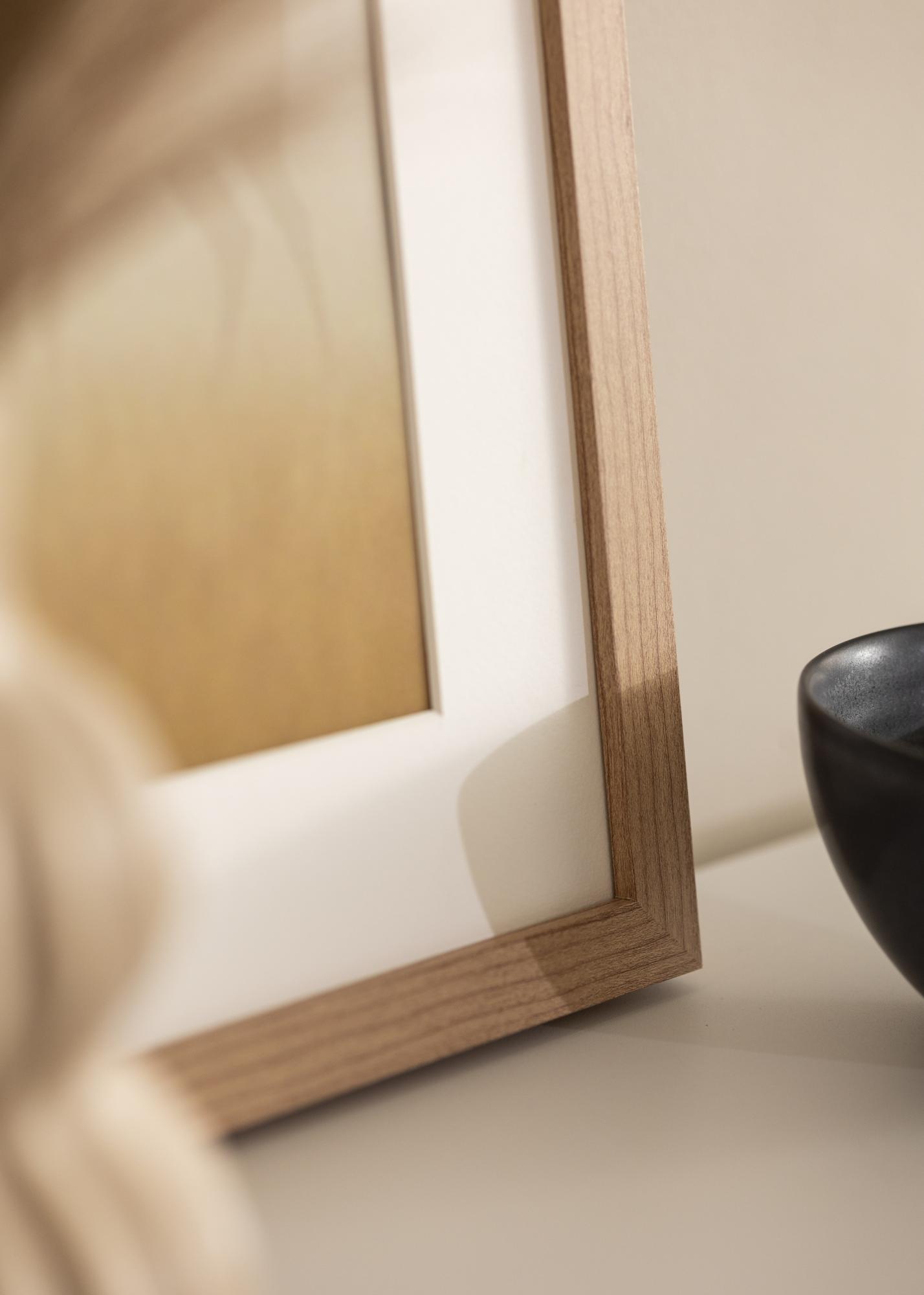 This frame has a deep profile of 30 mm. This extra distance from the wall enhances the framing and highlights your picture. The profile has a beautiful wood grain effect which adds even more character.